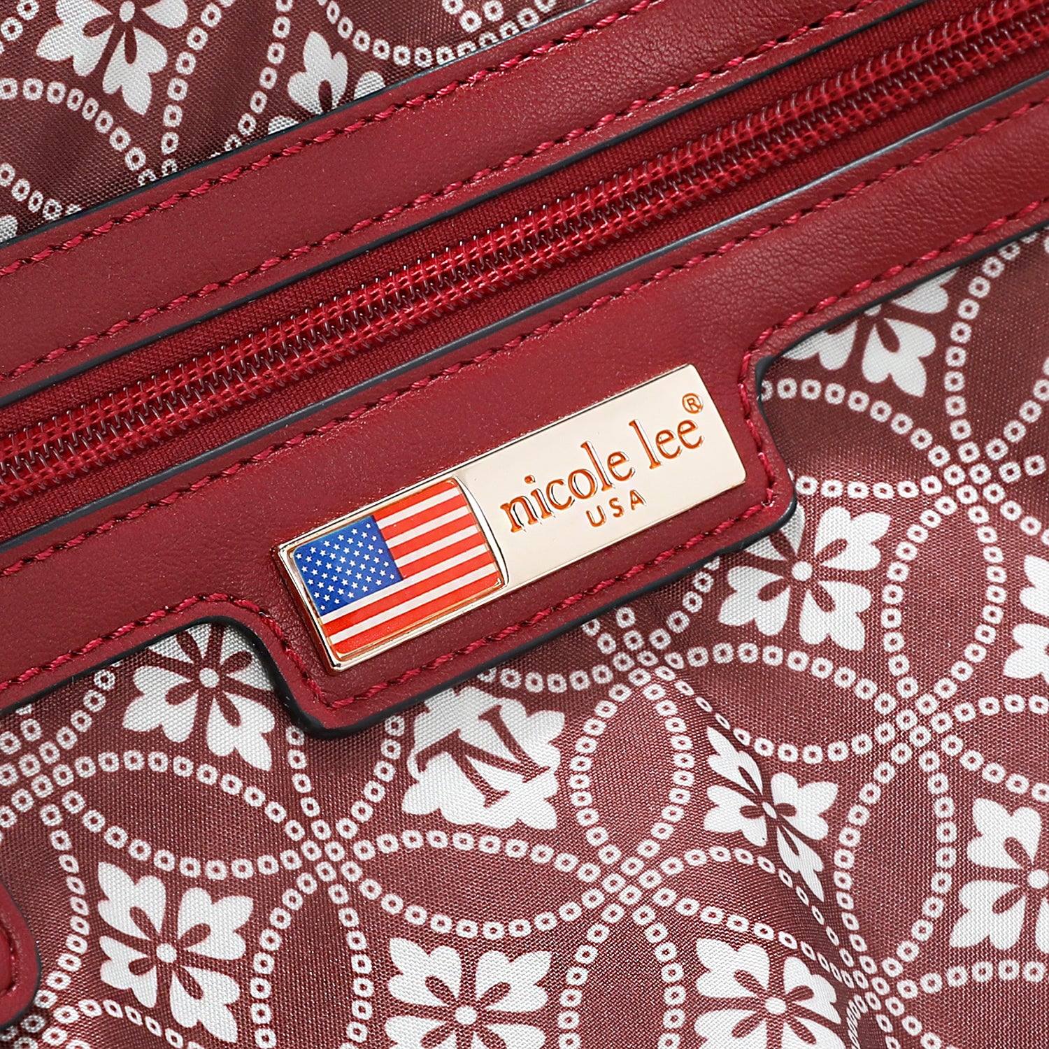 - Structured, rolled dual top handles (5.5' drop) with Nicole Lee authentic circle charm