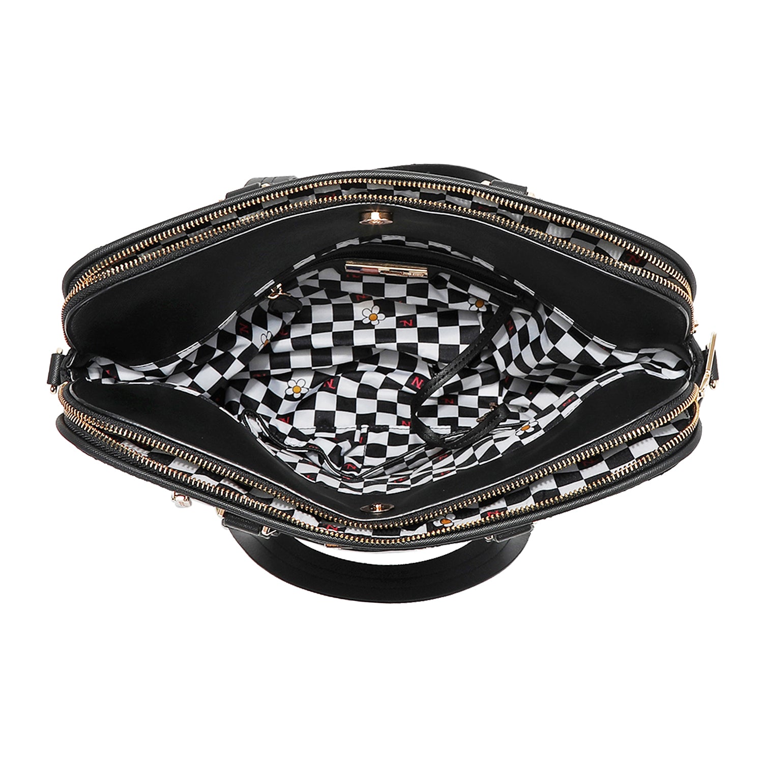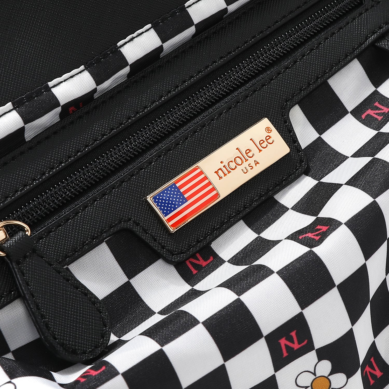 - Logo engraved nameplate with diamond rhinestones and zipper pulls