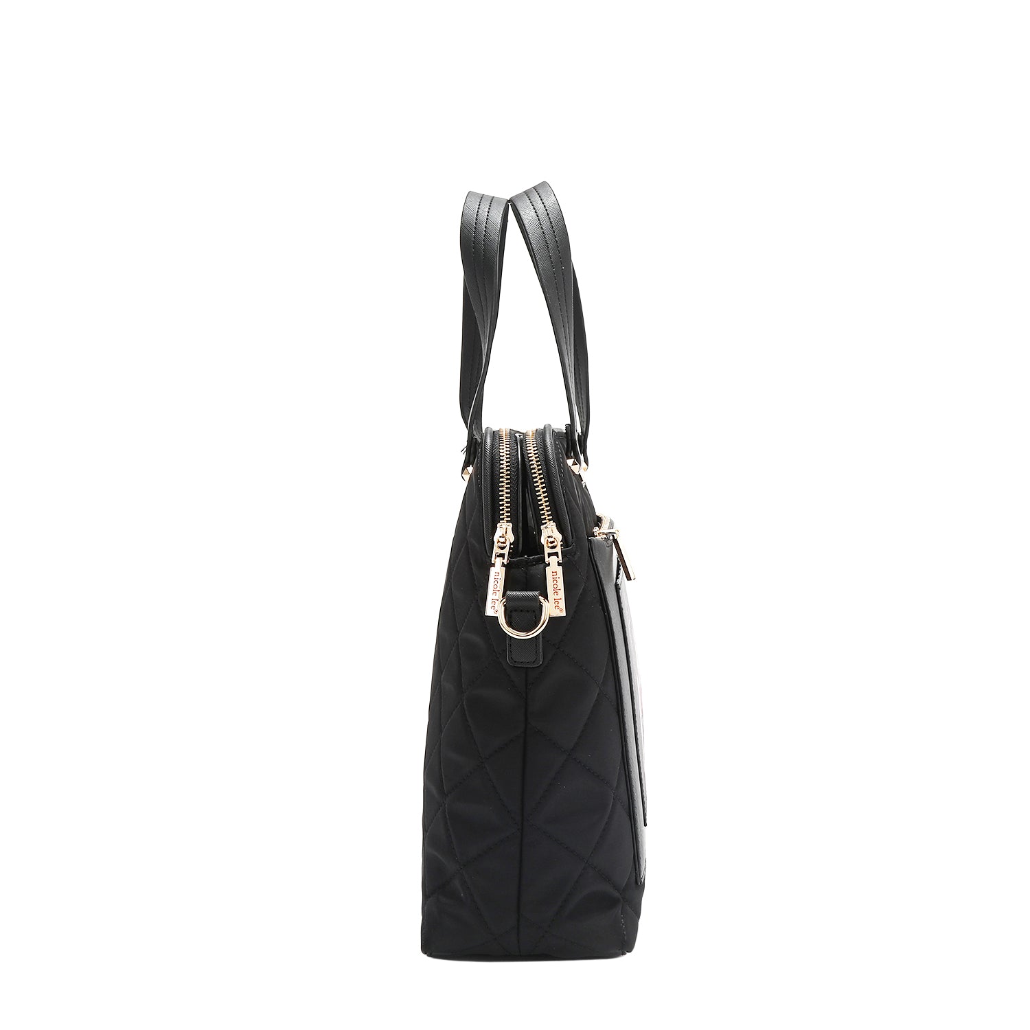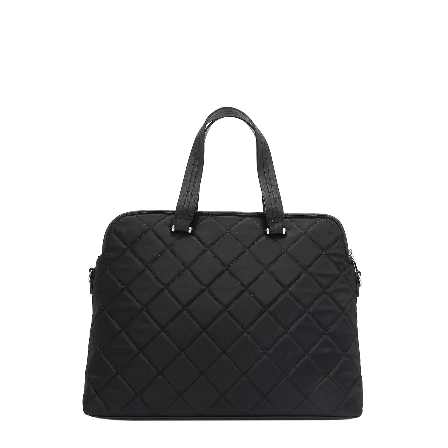 A smart addition to any working professional's wardrobe, our quilted laptop bag keeps you organized in style. With luxe quilted stitching, a slim silhouette, and three compartments for easy organization, it’s perfect for work essentials and fits a 16' laptop. Front pockets provide quick access to important documents, while the top handles and detachable shoulder strap offer versatile carrying options.