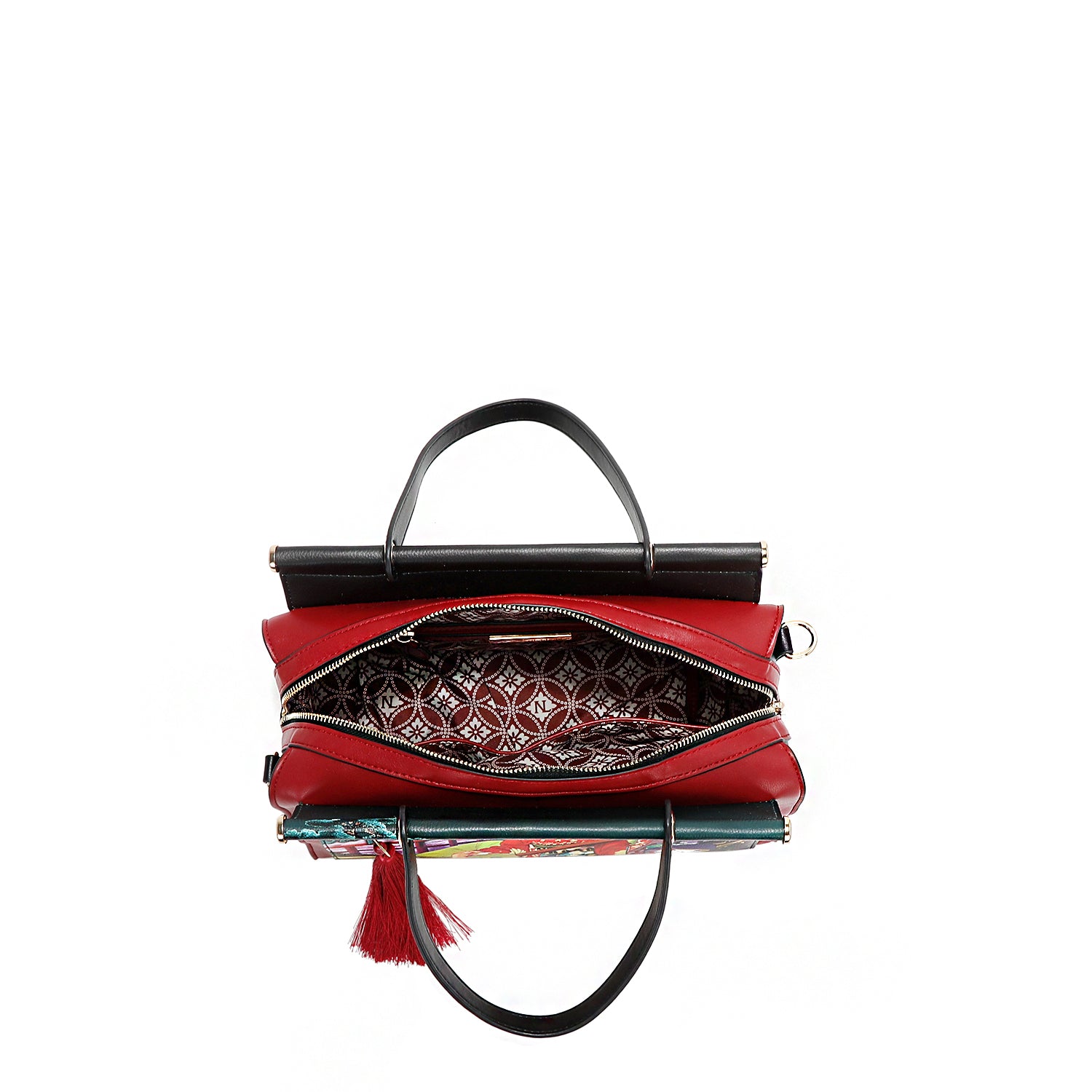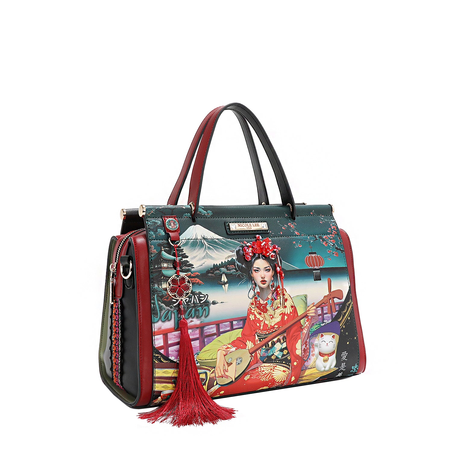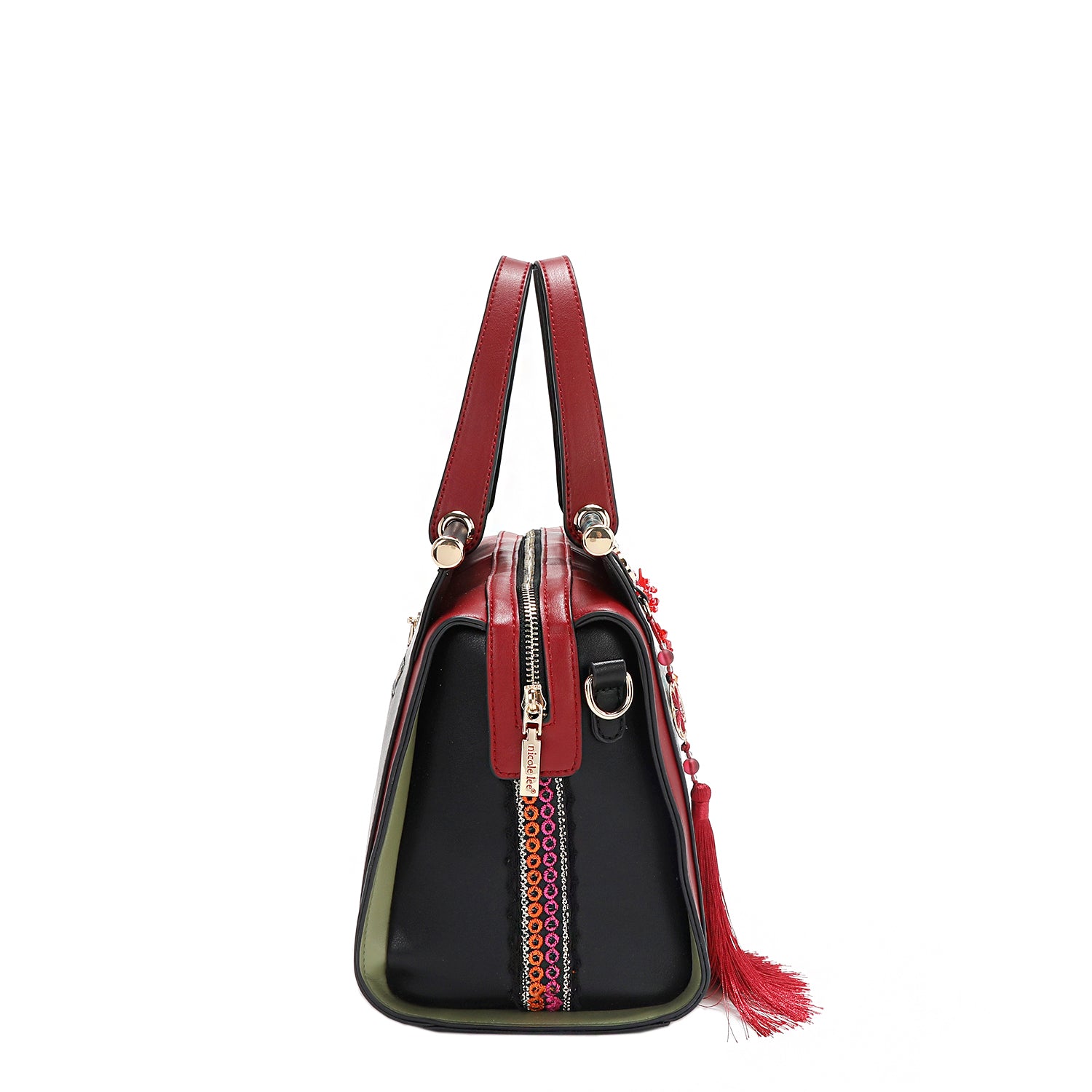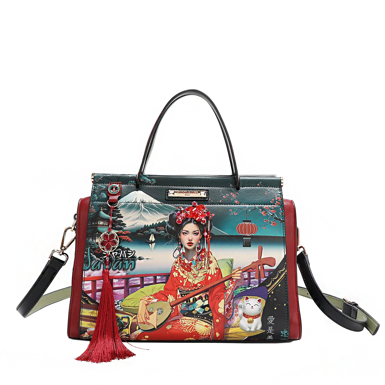 - Front keychain D-ring with detachable tassel charm