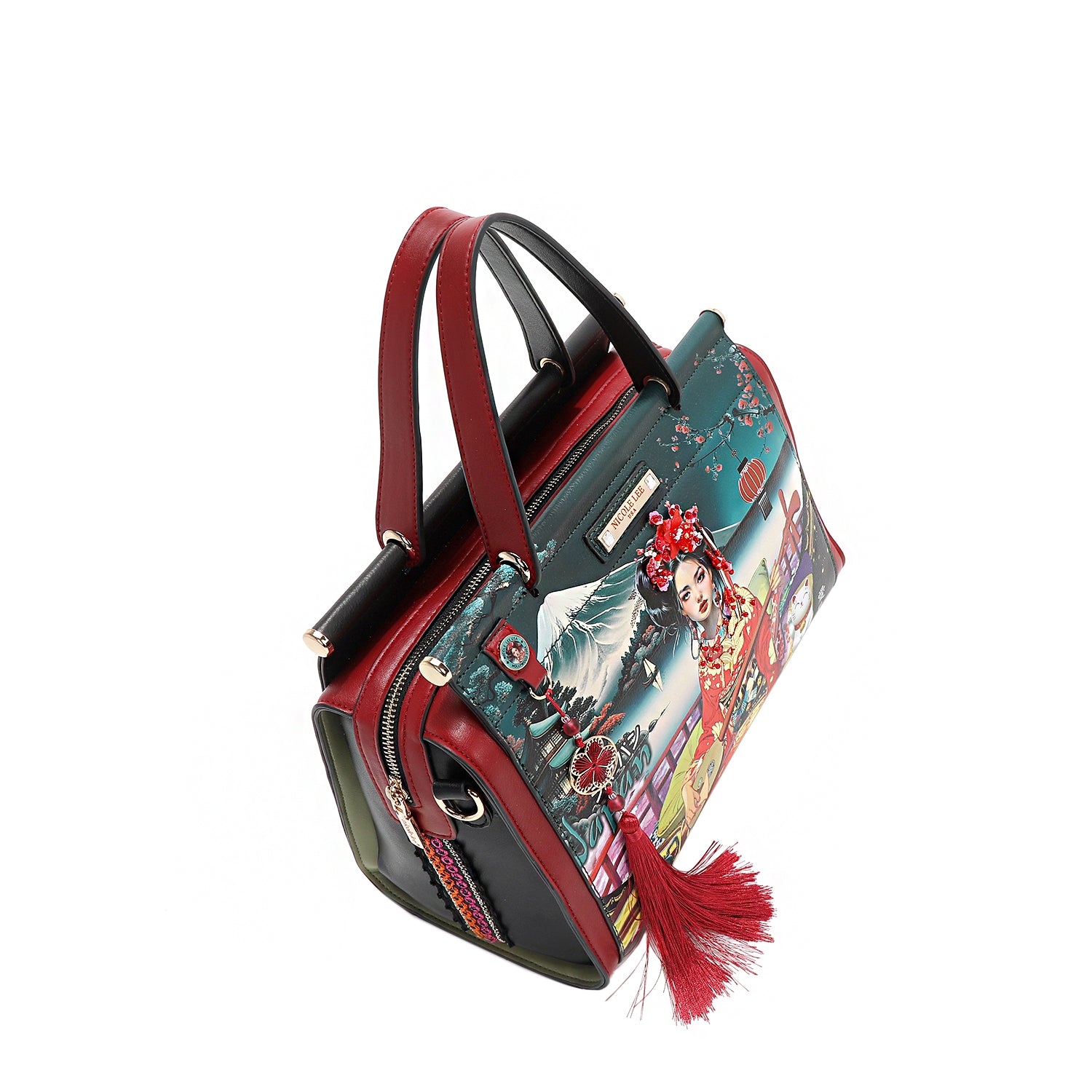 - Relaxed, flat dual top handles (5.25' drop) with Nicole Lee authentic circle charm