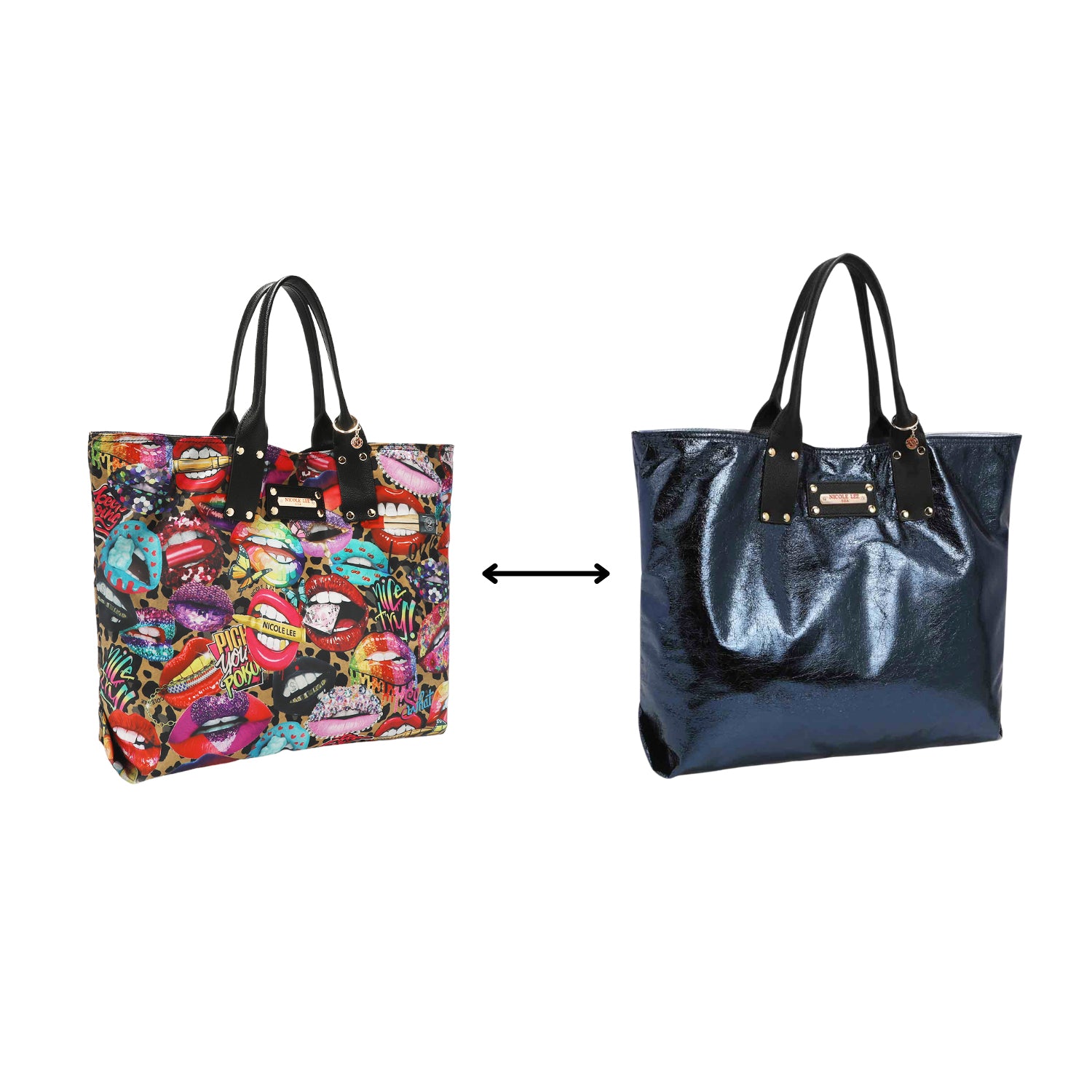 You can have it both ways with our reversible Alessandra shopper. With an eye-catching signature print on one side and a metallic, high-shine color on the other, this oversized yet lightweight bag will compliment any outfit, day or night.