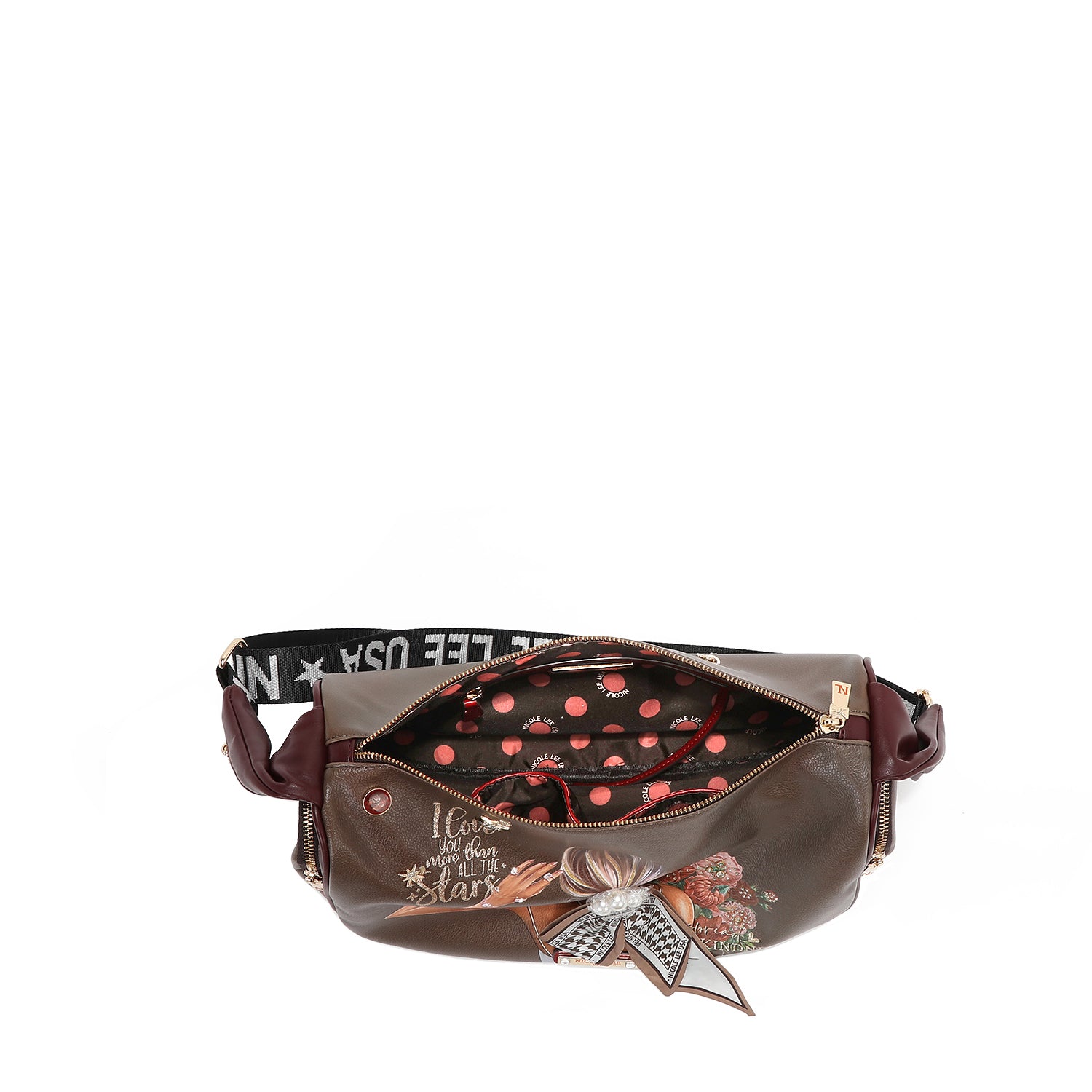 - Adjustable logo webbed shoulder strap with side zipper for small essentials