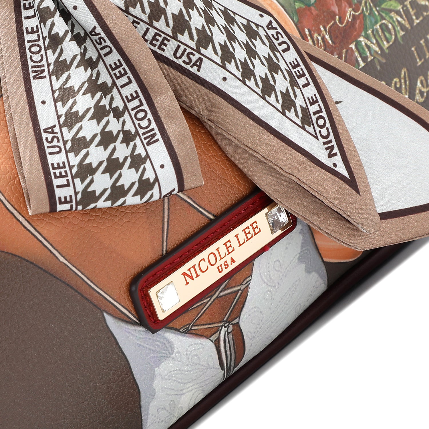 - Front is embellished with faux pearls, diamond rhinestones, and scarf detail