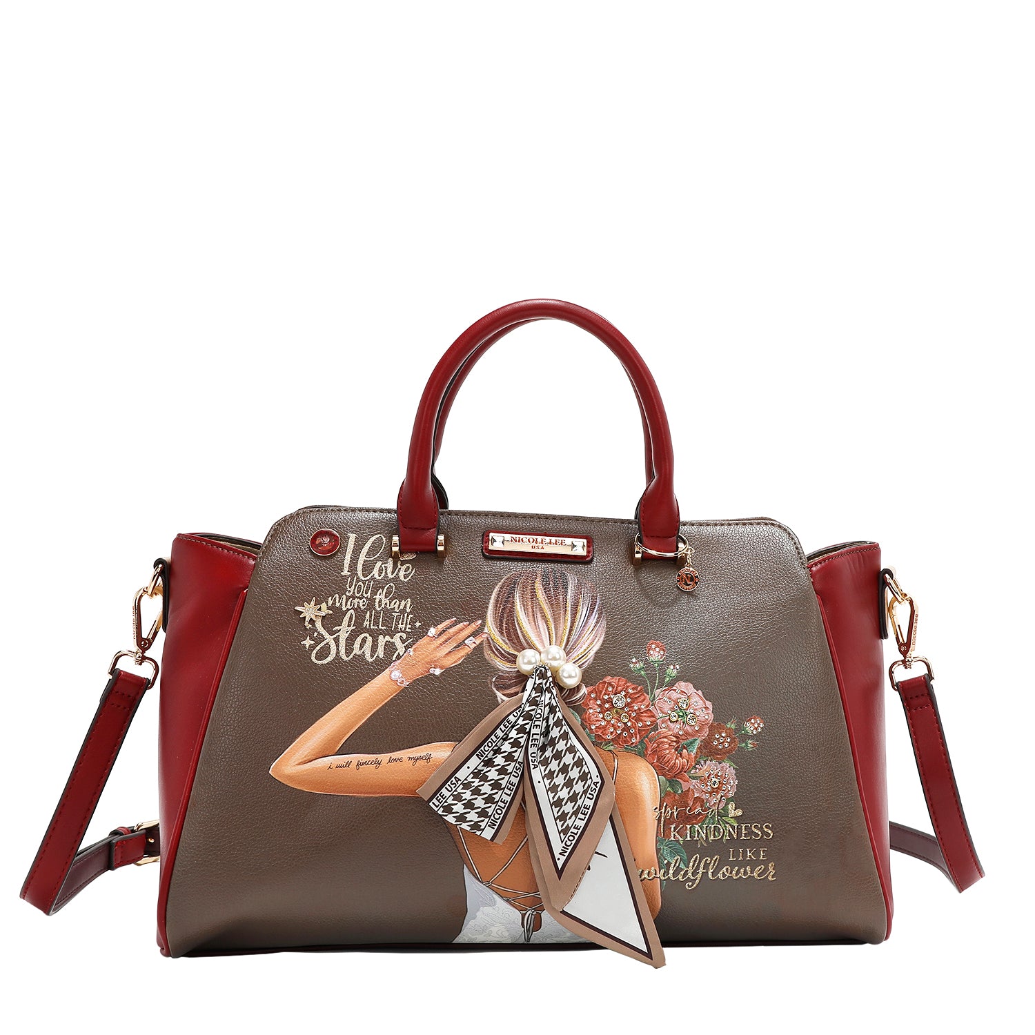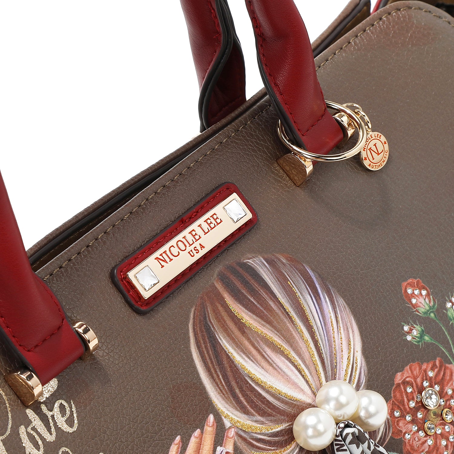 - Structured, rolled dual top handles (4.5' drop) with Nicole Lee authentic circle charm