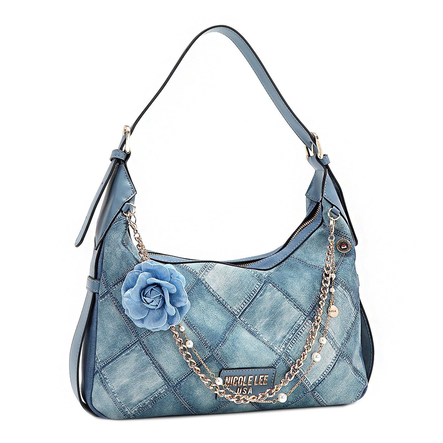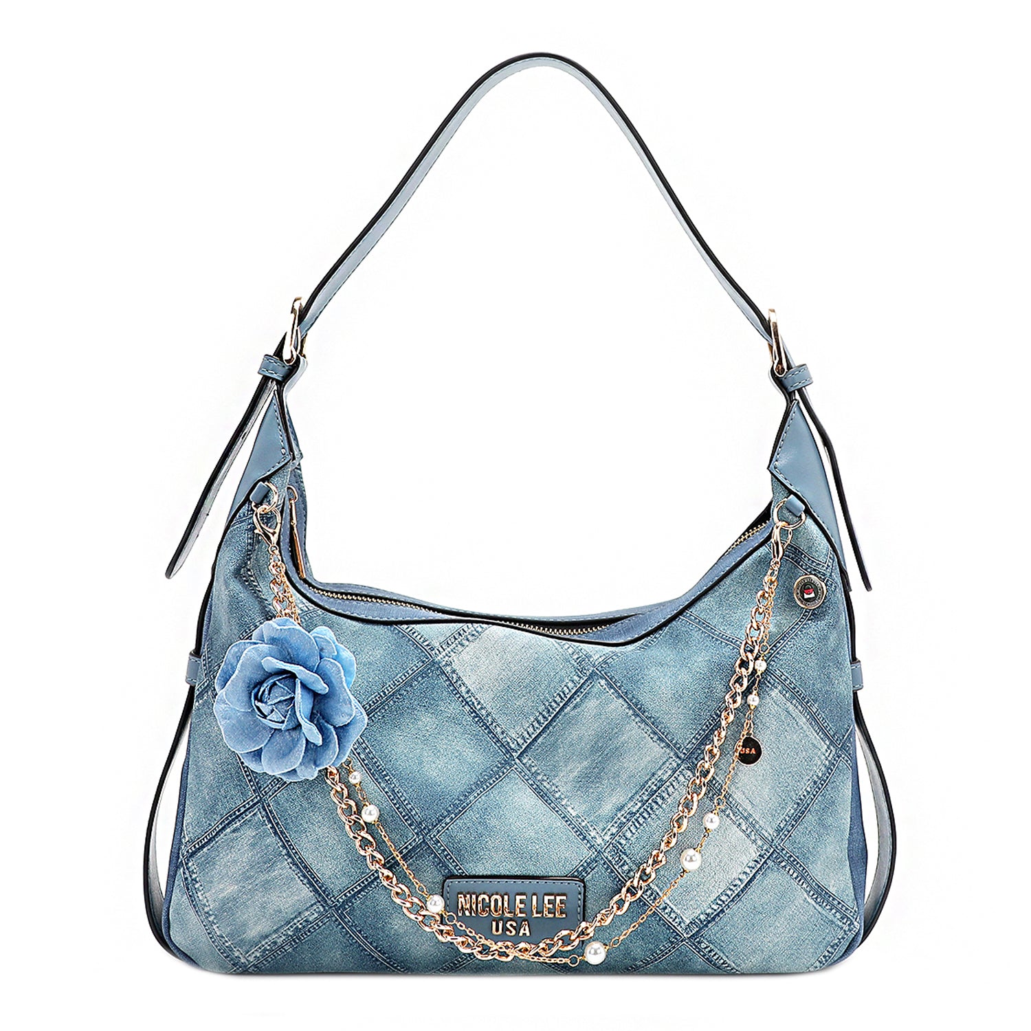 With its quilted patchwork denim design, our blue flower shoulder bag exudes effortless charm and is perfectly sized to carry your essentials for work or a day out with friends. Elevate your look and a touch of elegance with the detachable pearl and flower chain-link strap!