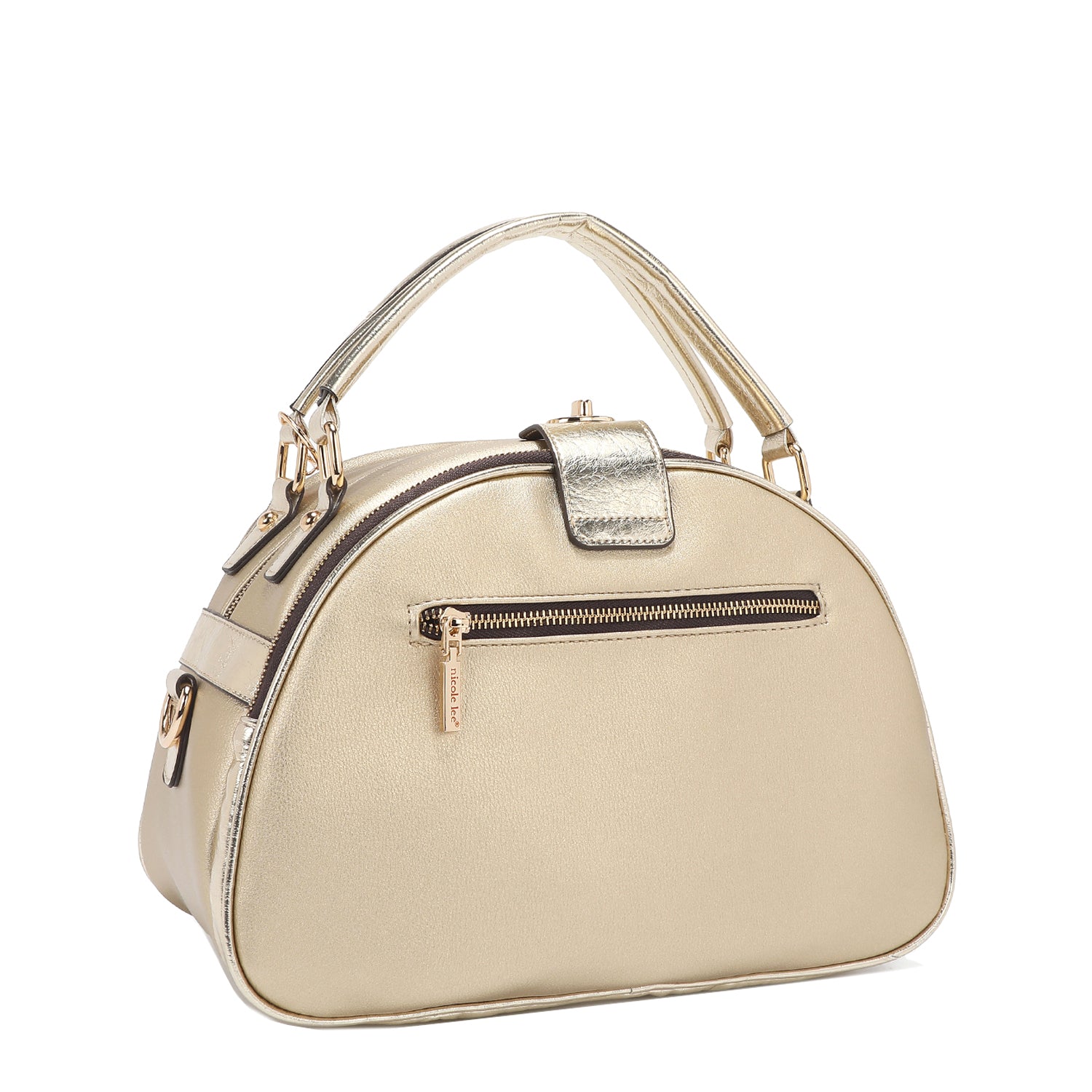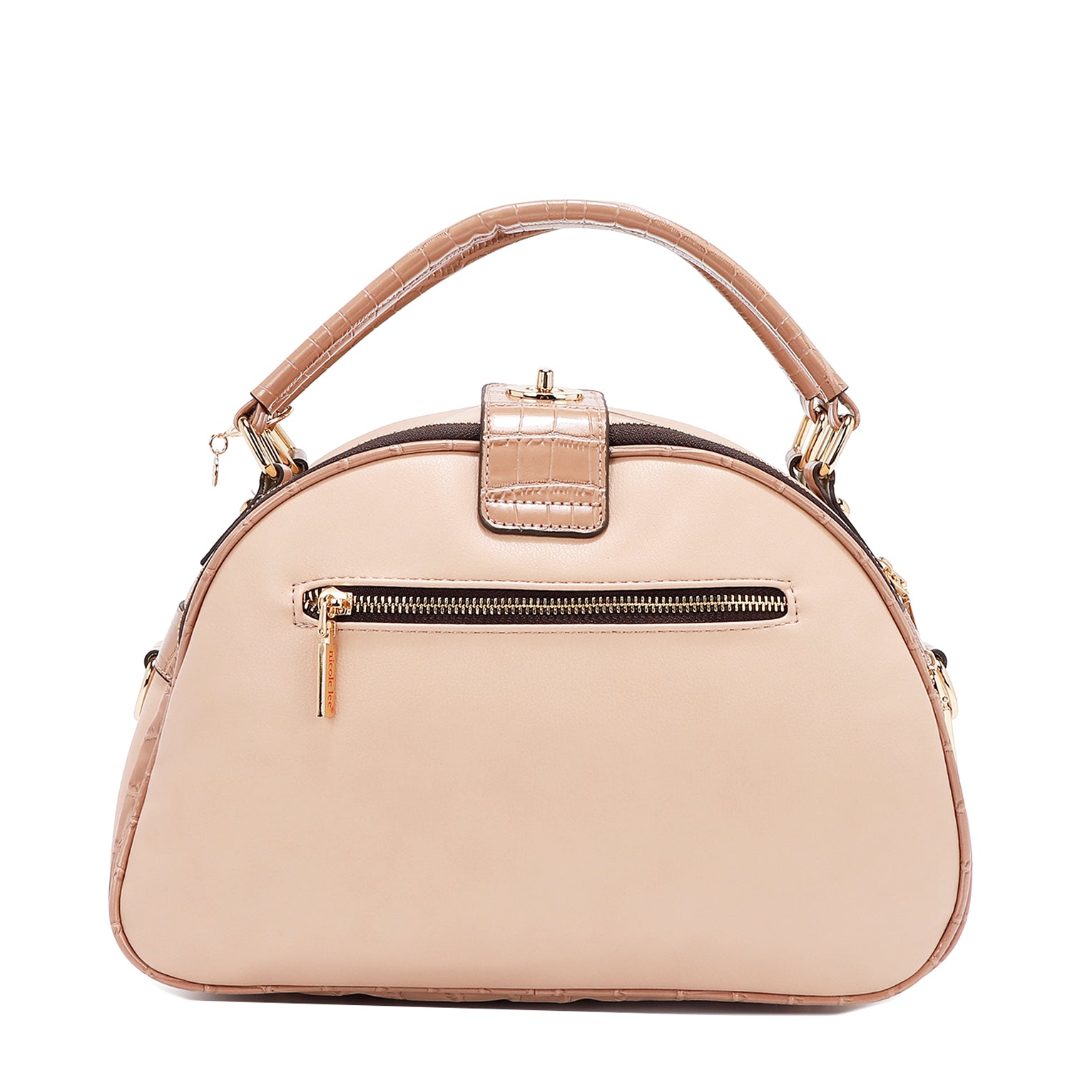 The Calista dome-shaped satchel exudes effortless style with its sculpted form and bold buckle strap details. Designed for versatility, it seamlessly transitions from day to night while adding a structured, fashion-forward edge to any look. It also features an extra zip compartment on the back with a secure twist-lock flap closure, keeping your most-used items easily reachable yet secure.