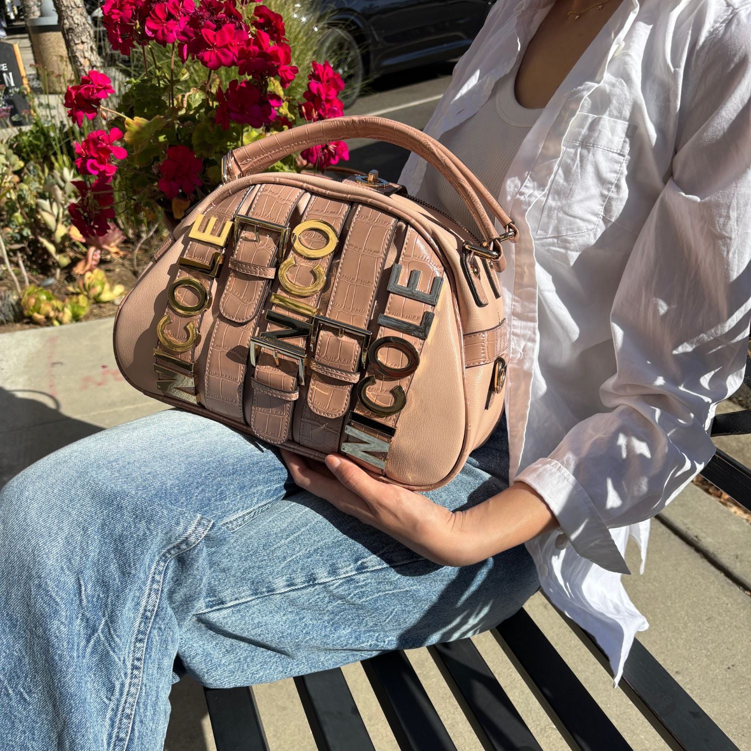 - Relaxed, flat dual top handles (4' drop) with Nicole Lee authentic circle charm