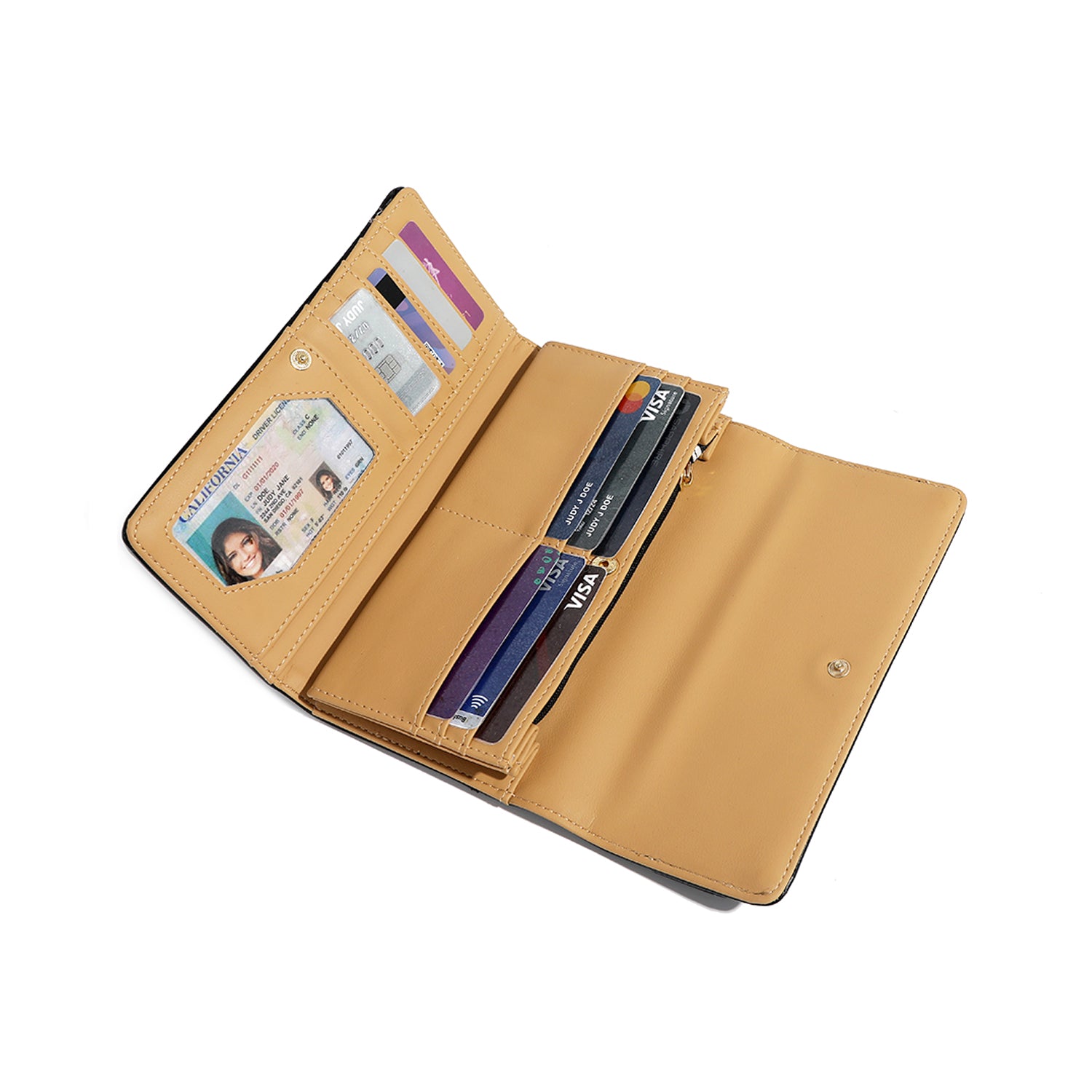 - 11 card slots, 1 ID window, 2 cash compartments