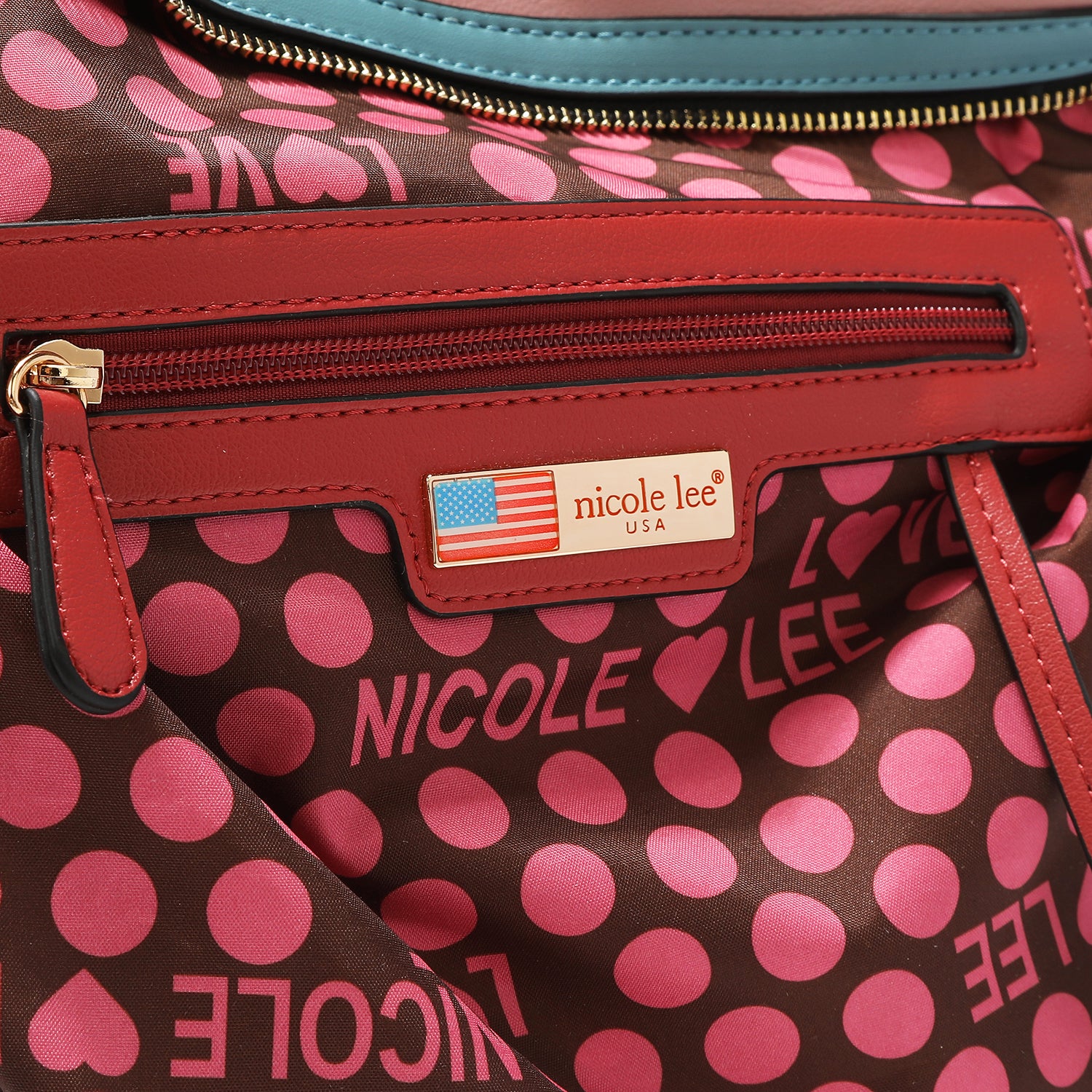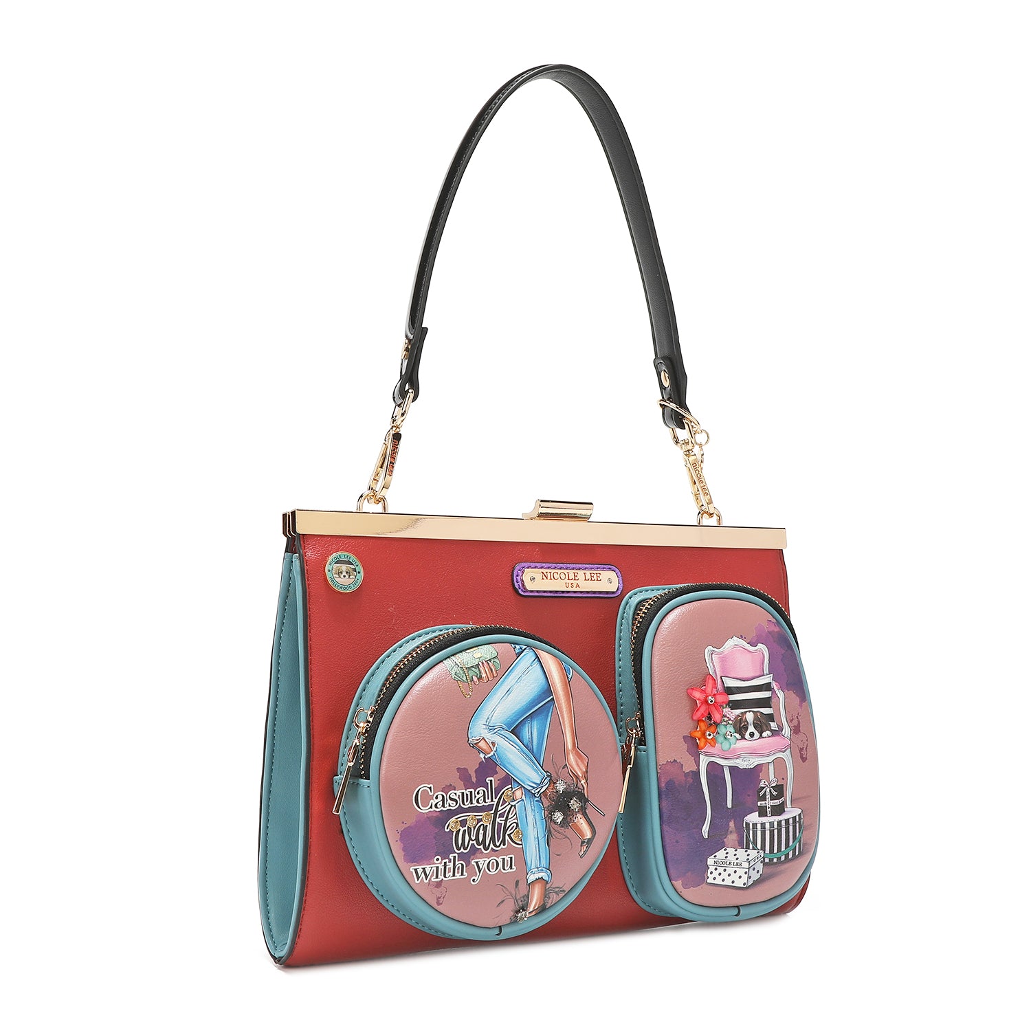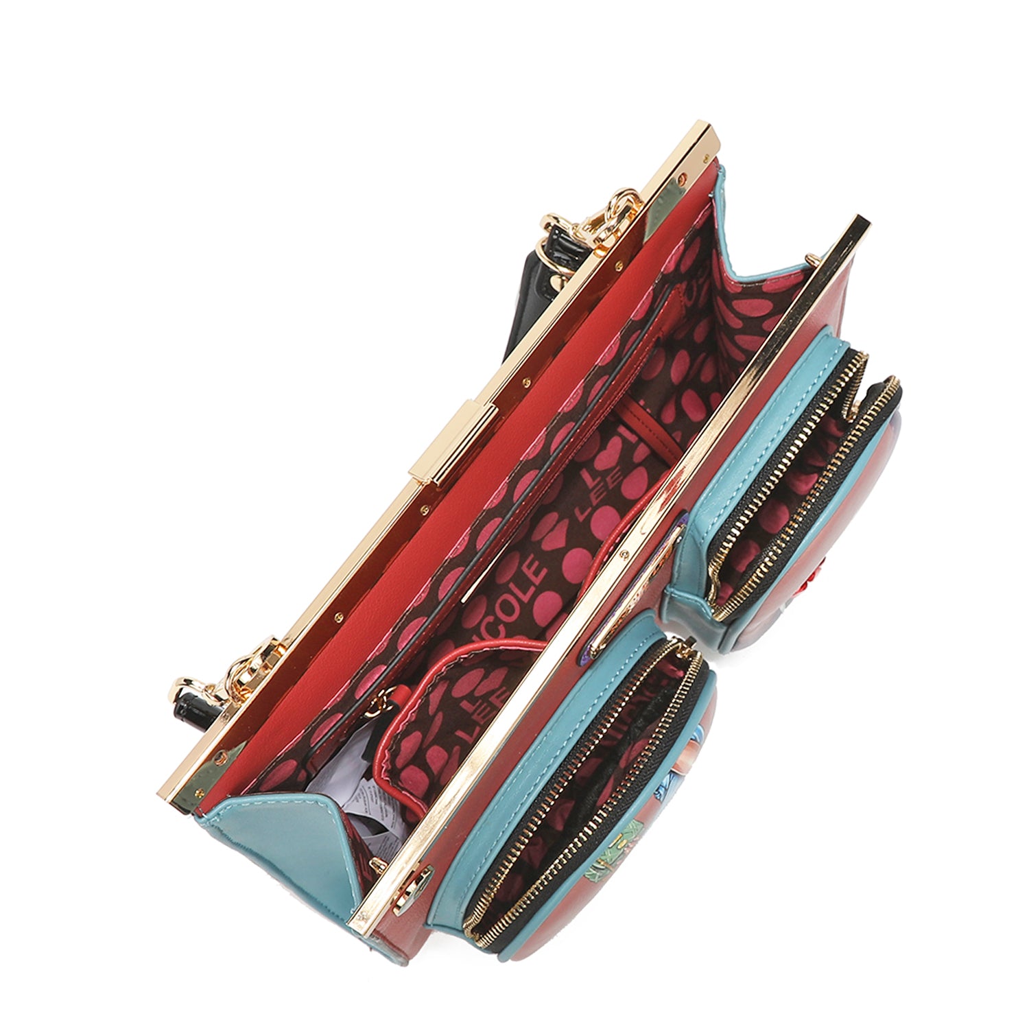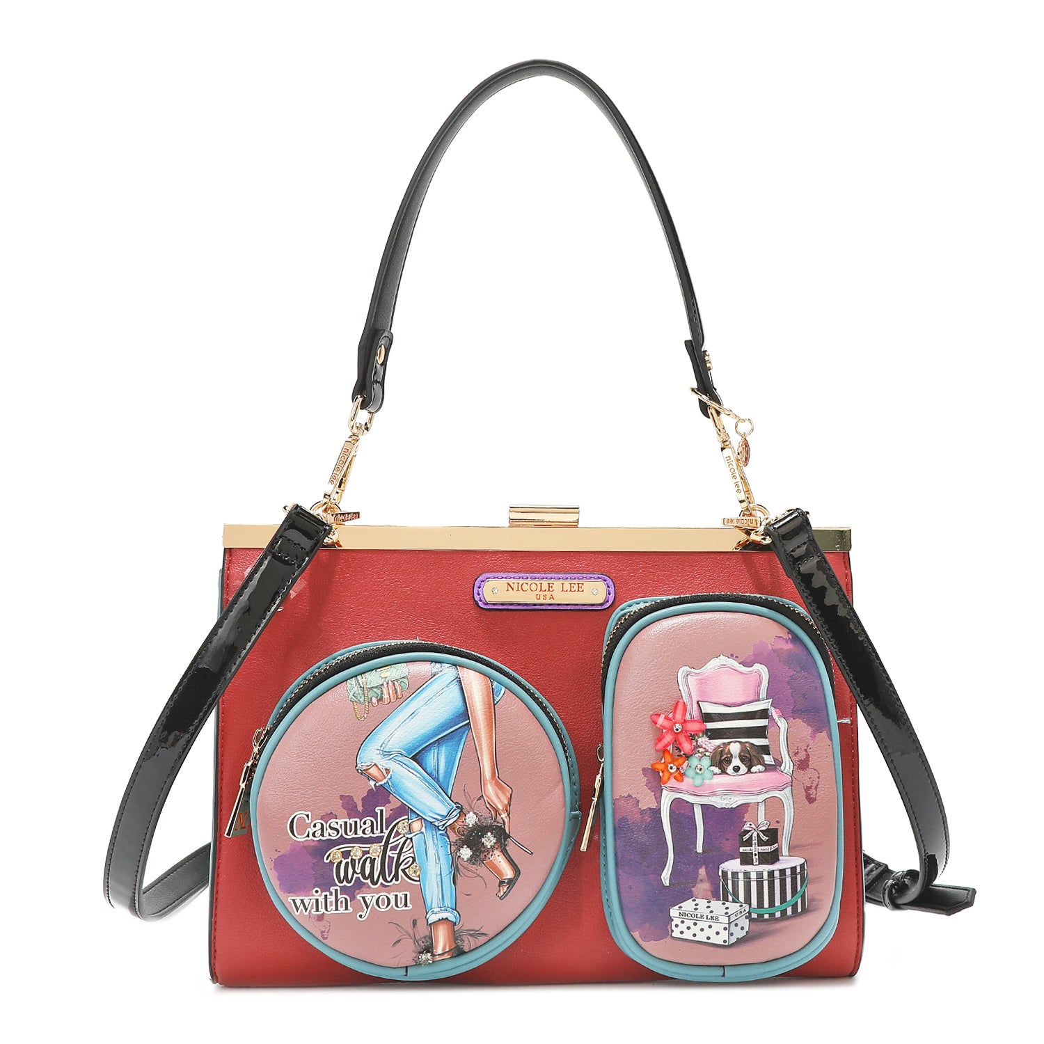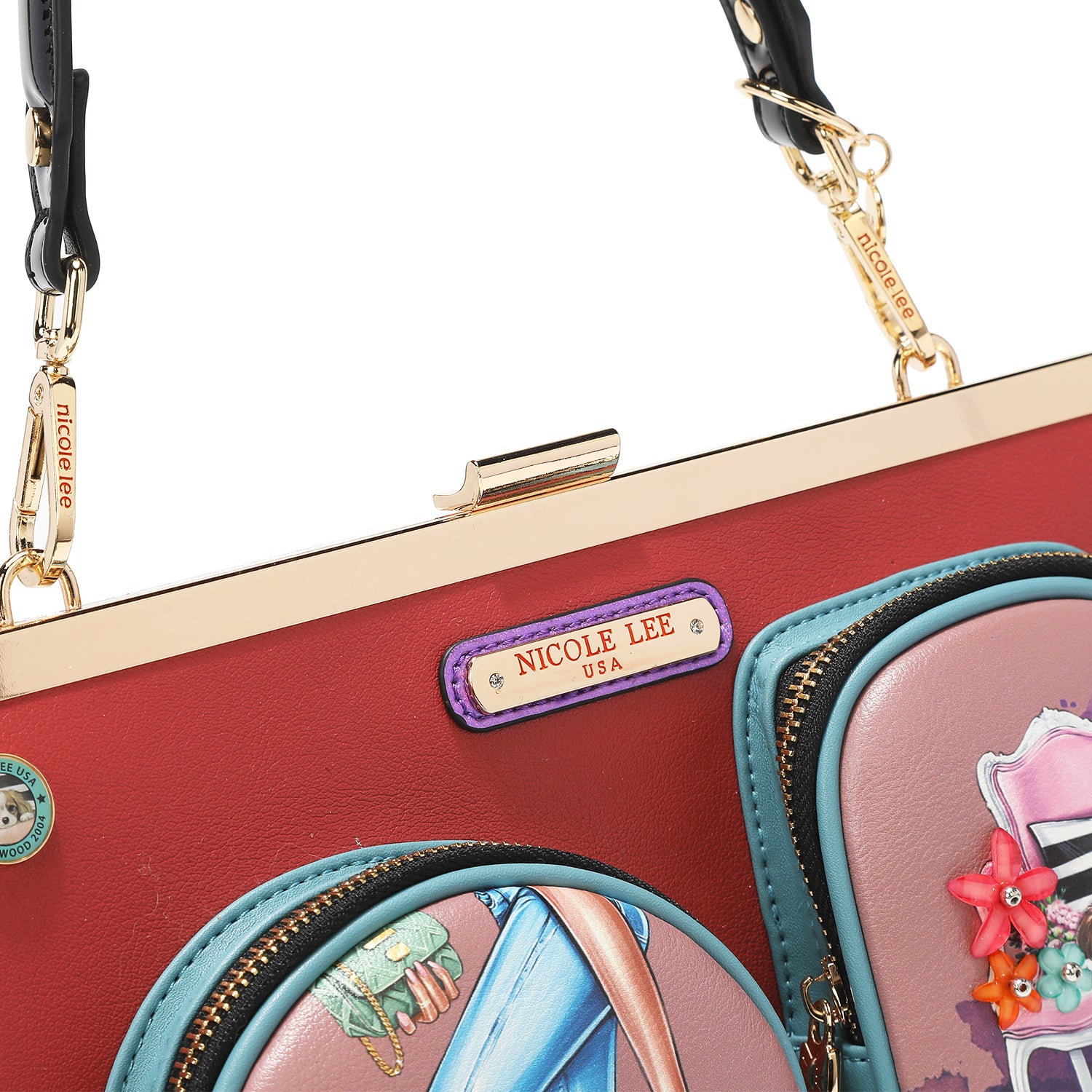 - Detachable patent leather shoulder strap with Nicole Lee authentic circle charm (8.5' drop)