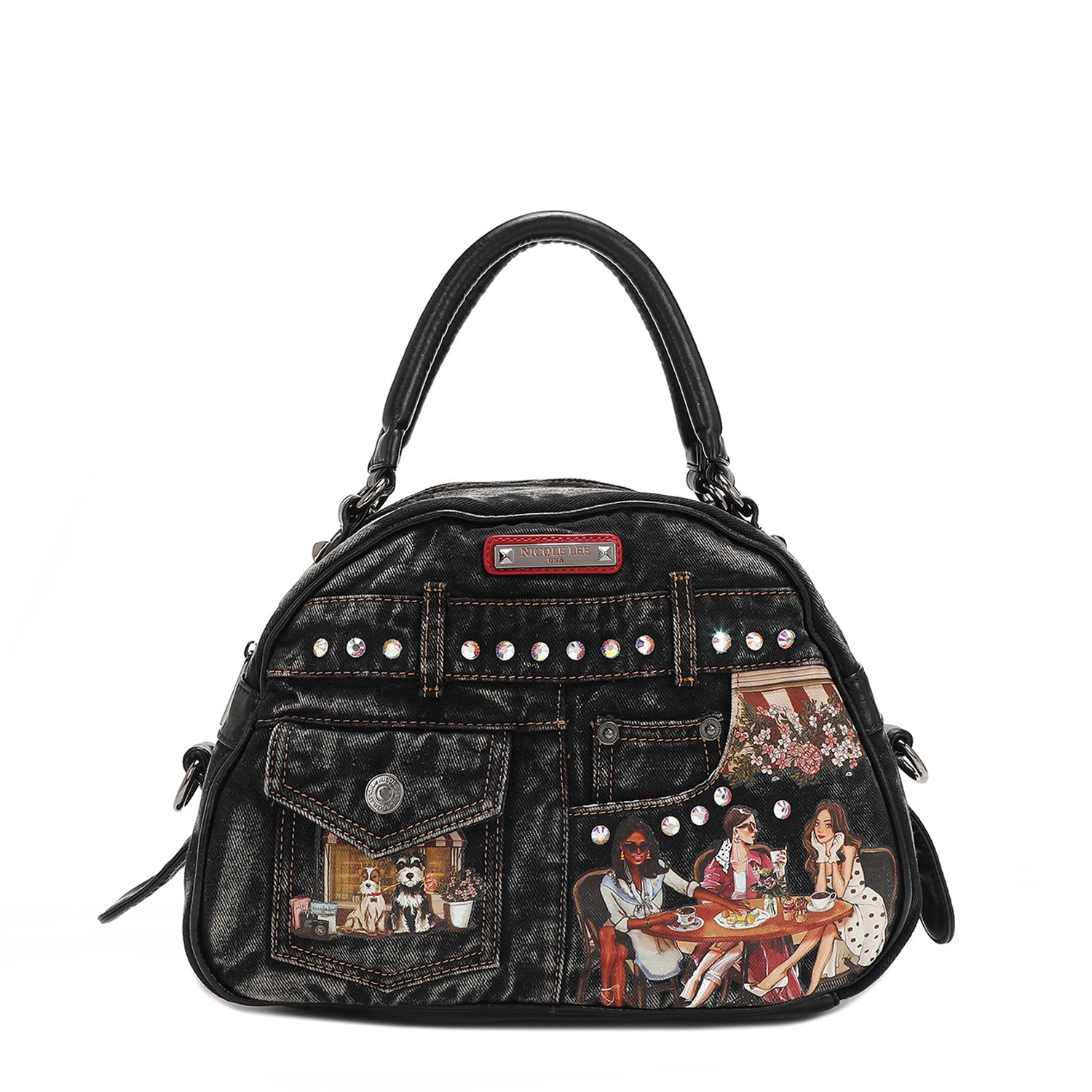 Experience the playful yet practical allure of our Sisters Secret handbag, featuring a jean-style design with plenty of pockets for organization. With two compartments to store your essentials, this timeless dome bag combines functionality with whimsical charm.