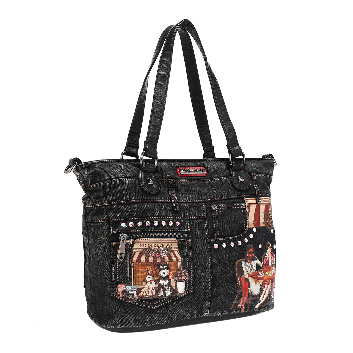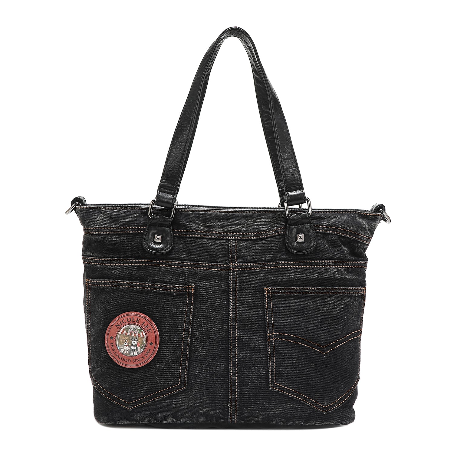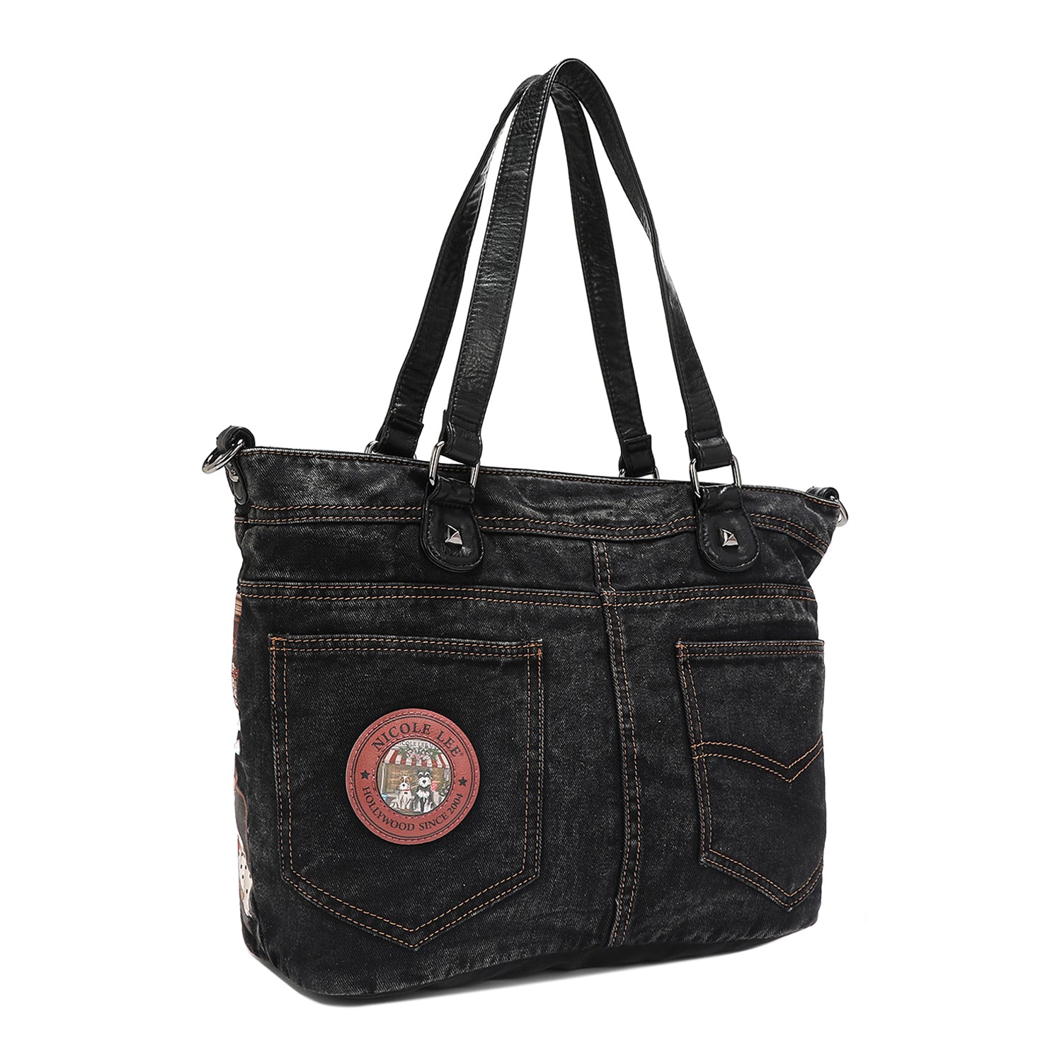 Blending fashion-forward design with practicality, make a style statement with our medium-sized Sisters Secret tote bag, adorned with jean-style slip pockets on the back and studded front pockets.
