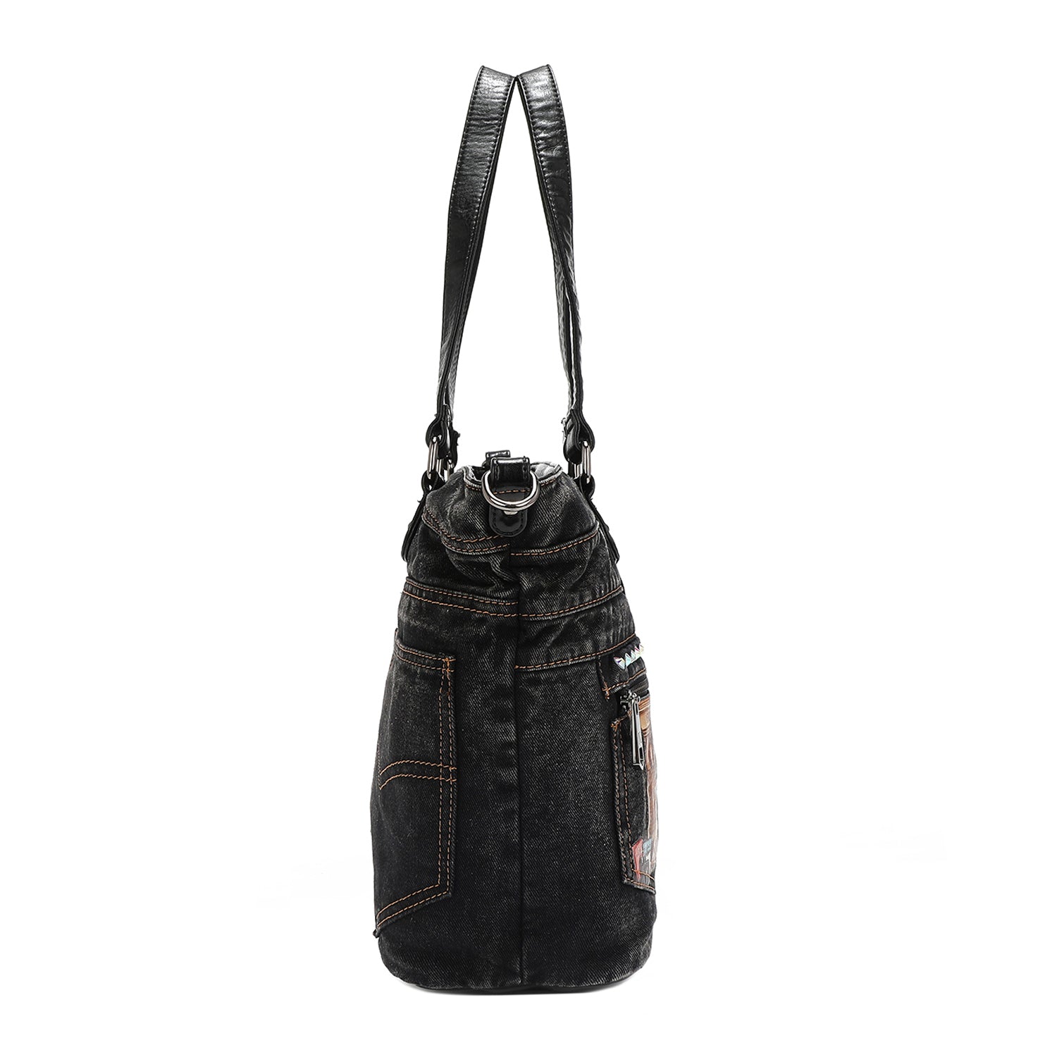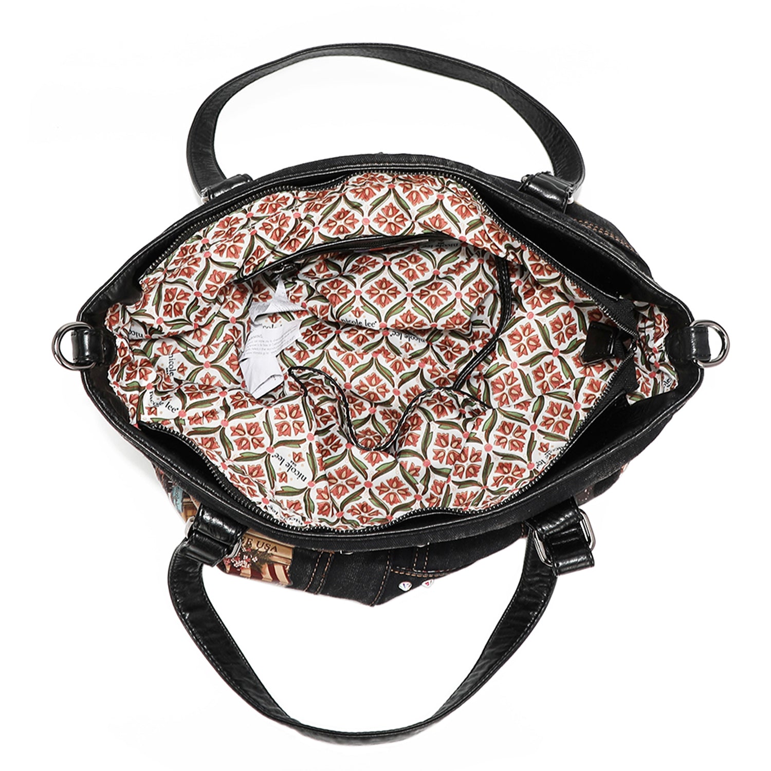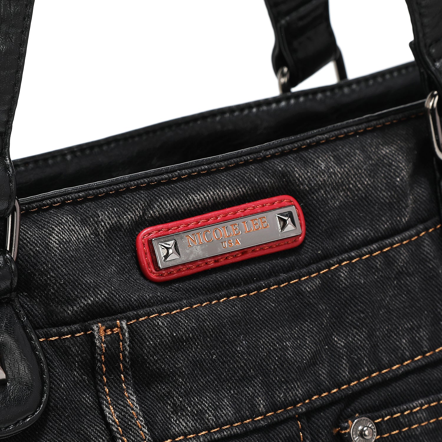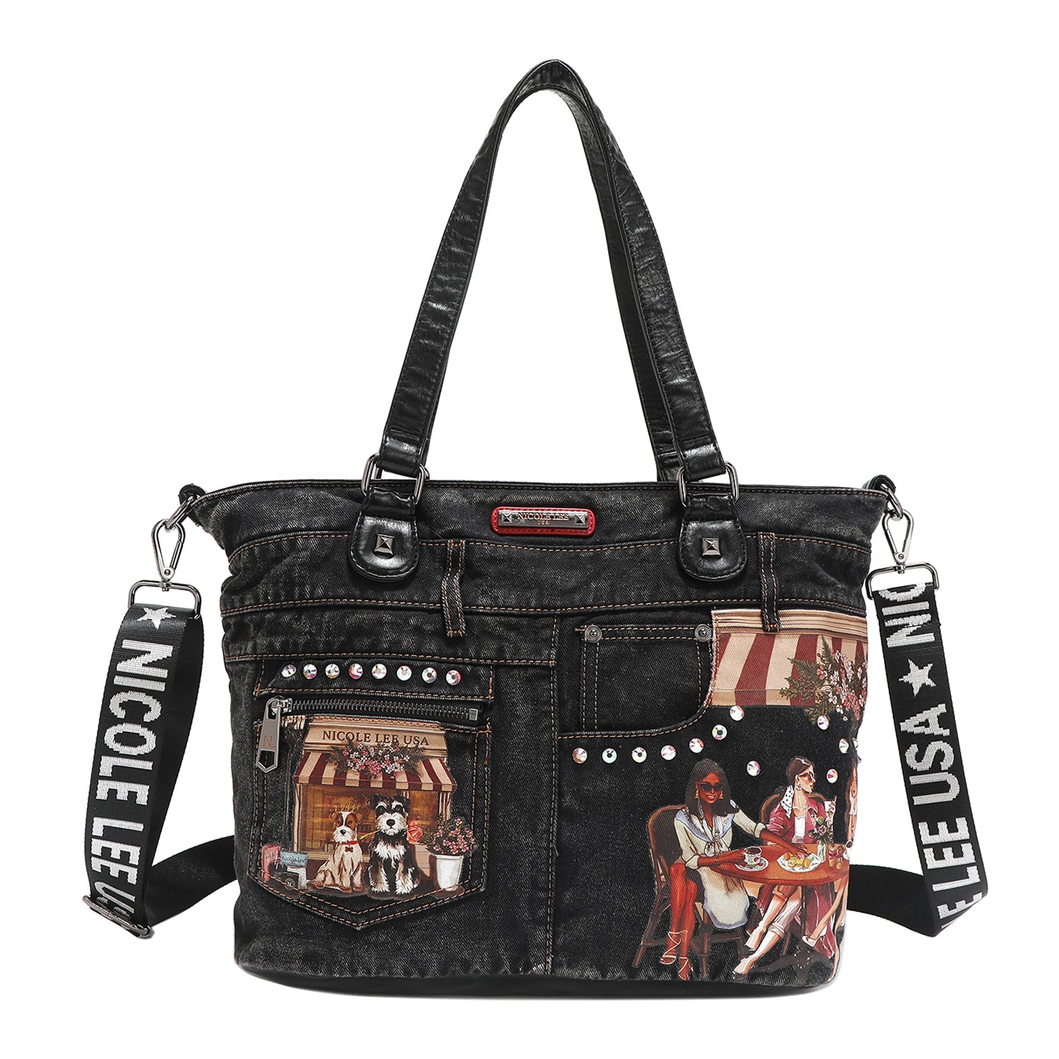 Blending fashion-forward design with practicality, make a style statement with our medium-sized Sisters Secret tote bag, adorned with jean-style slip pockets on the back and studded front pockets.