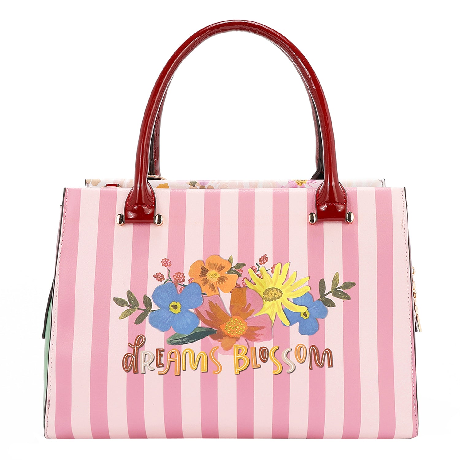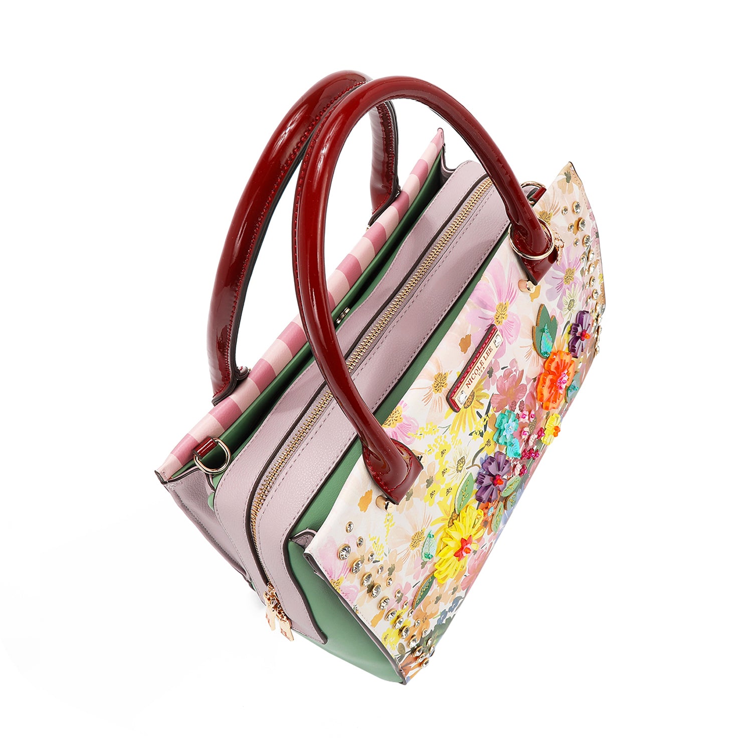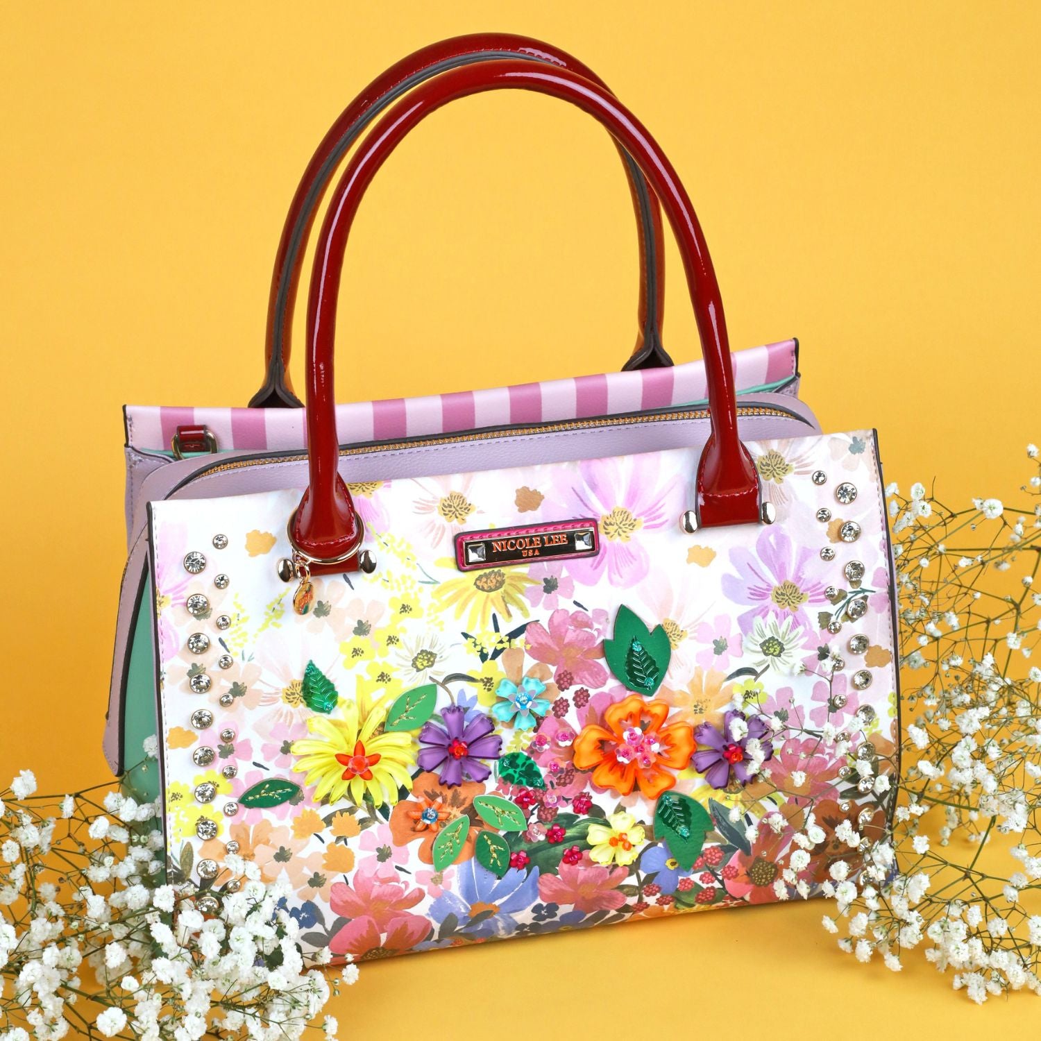 Carry yourself with poise and petals with our Dreams Blossom satchel. Offering 3 compartments, lose yourself in the dreamscape of this spring-ready bag with its structured silhouette and mesmerizing floral artistry. Like a sunny day in full bloom, the twinkling rhinestones and intricate textures invite admiration, making every outing feel like a stroll through an enchanted garden.