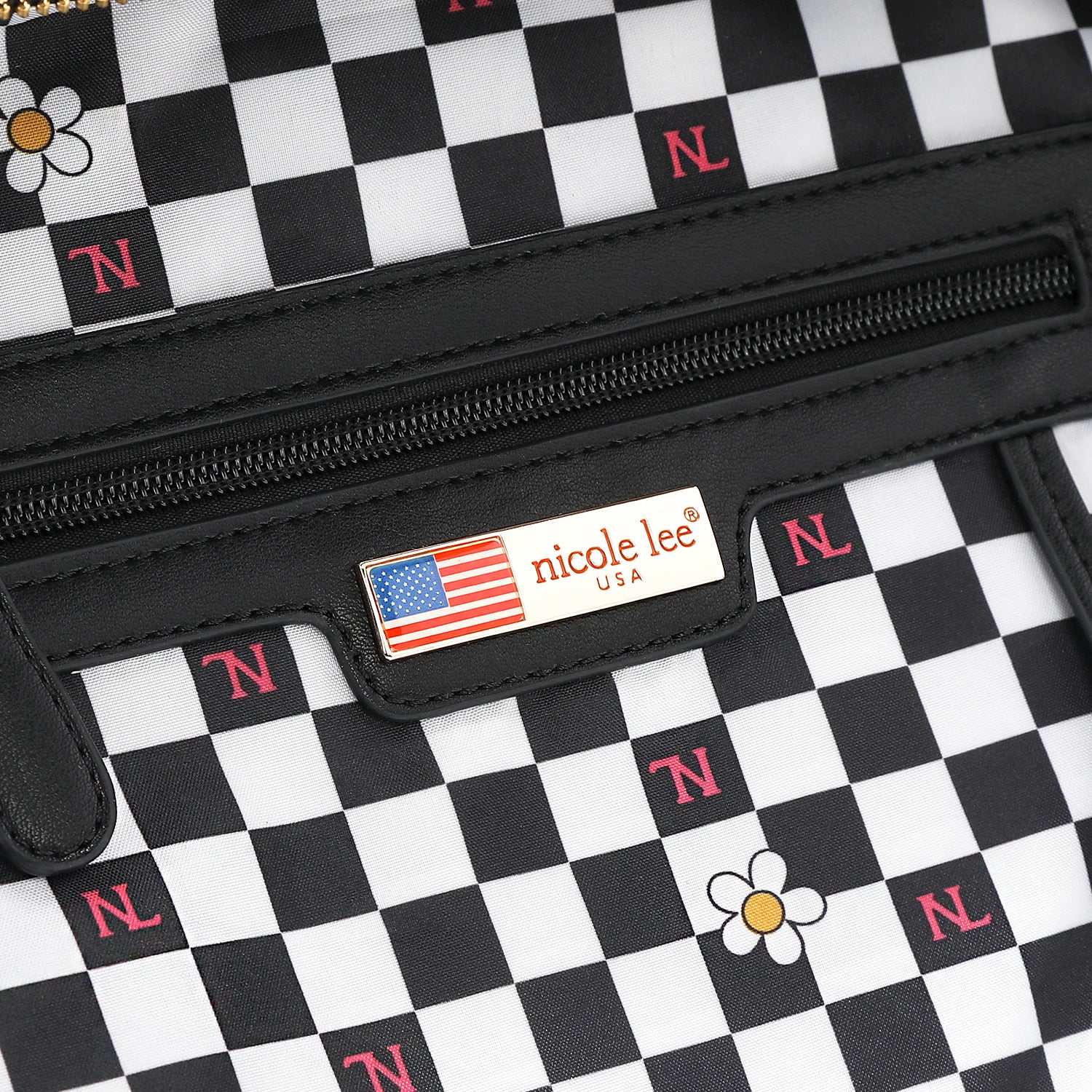 - Interior checker print lining in polyester