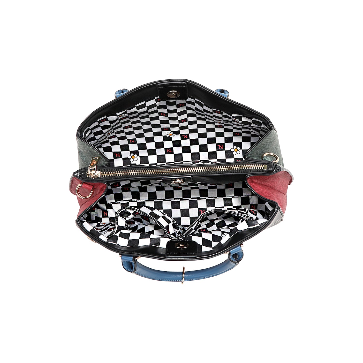 - Interior checker print lining in polyester