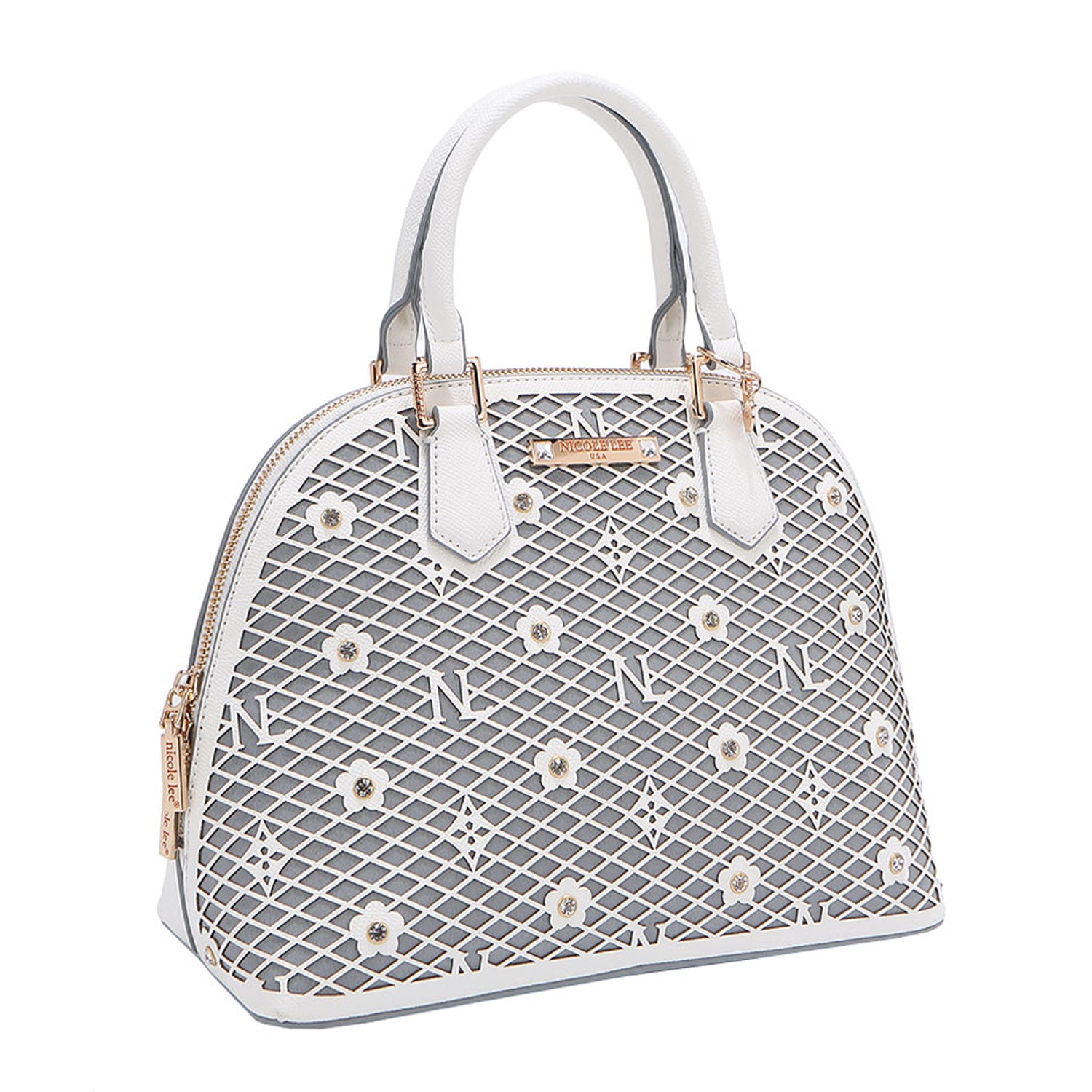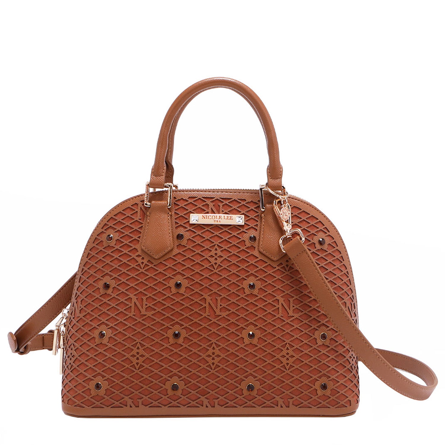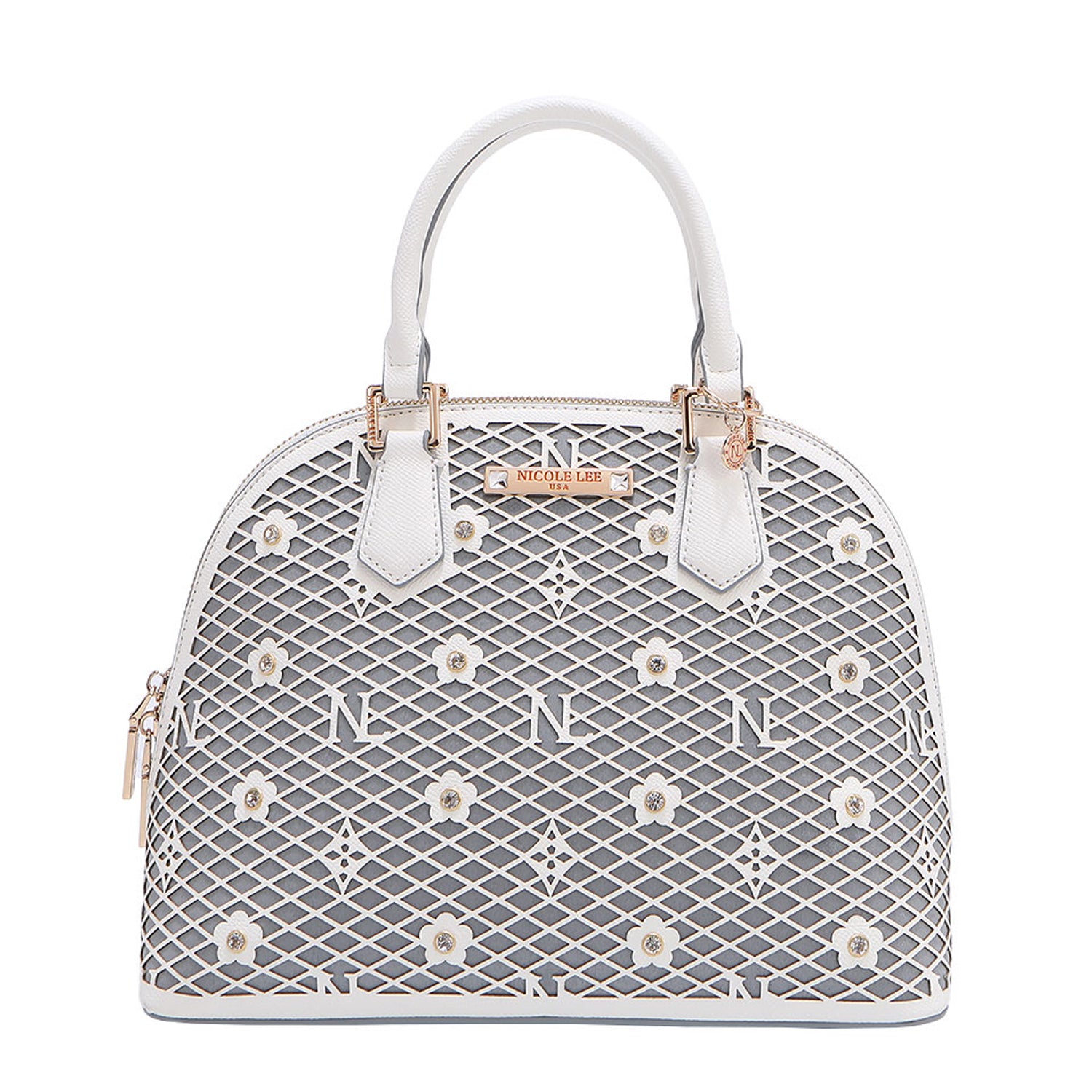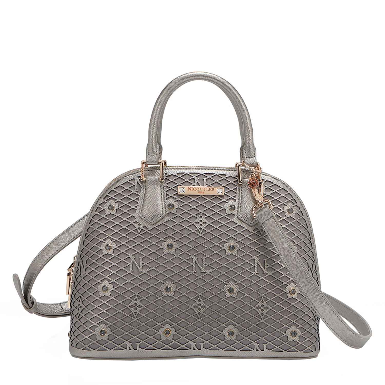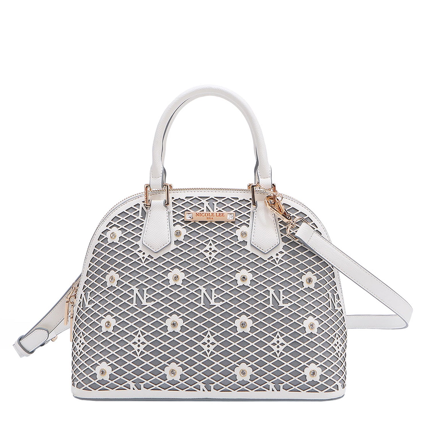 Sleek curves meet sharp craftsmanship in the Gracie dome satchel. Defined by its sculptural silhouette and signature laser-cut detailing, this bag is adorned with tonal rhinestones that add a subtle sparkle. Elegant top handles and a versatile crossbody strap make it the perfect companion for both polished daywear and chic evenings out.