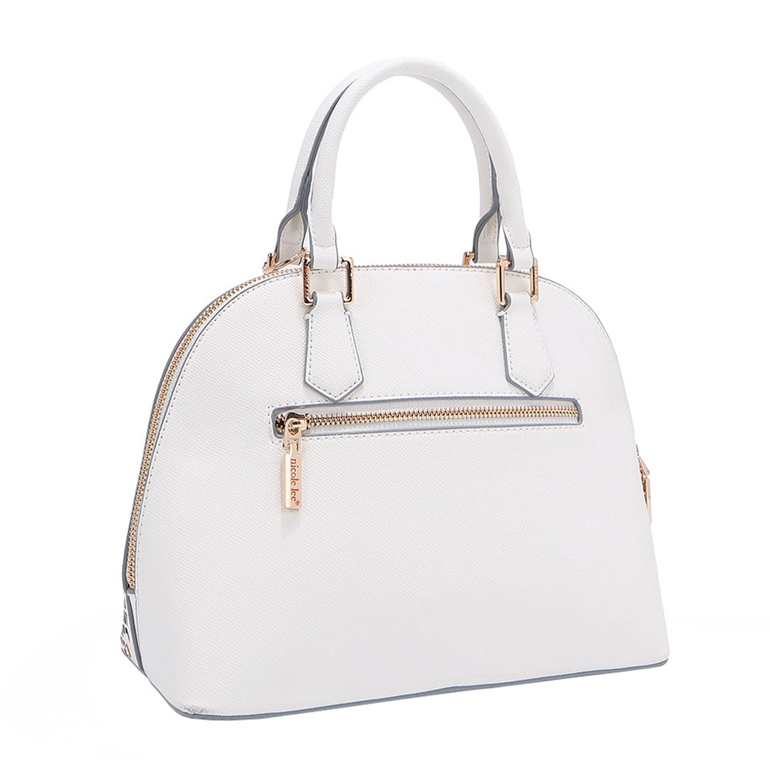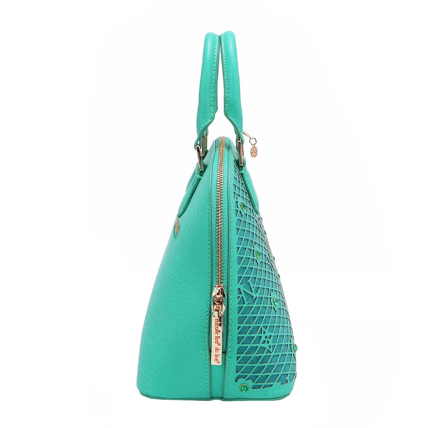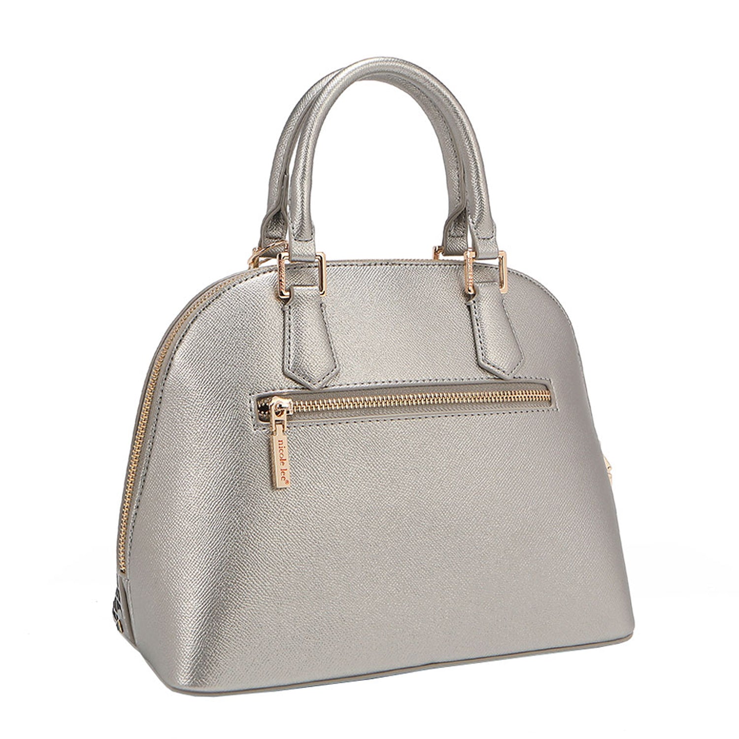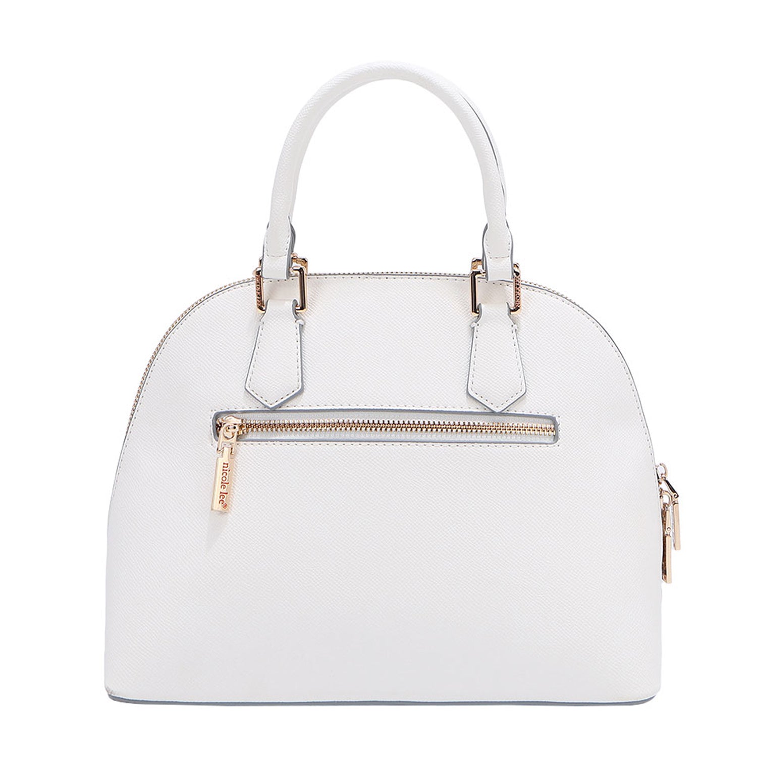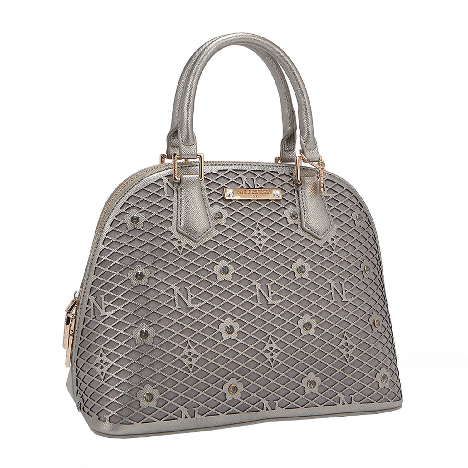 Sleek curves meet sharp craftsmanship in the Gracie dome satchel. Defined by its sculptural silhouette and signature laser-cut detailing, this bag is adorned with tonal rhinestones that add a subtle sparkle. Elegant top handles and a versatile crossbody strap make it the perfect companion for both polished daywear and chic evenings out.