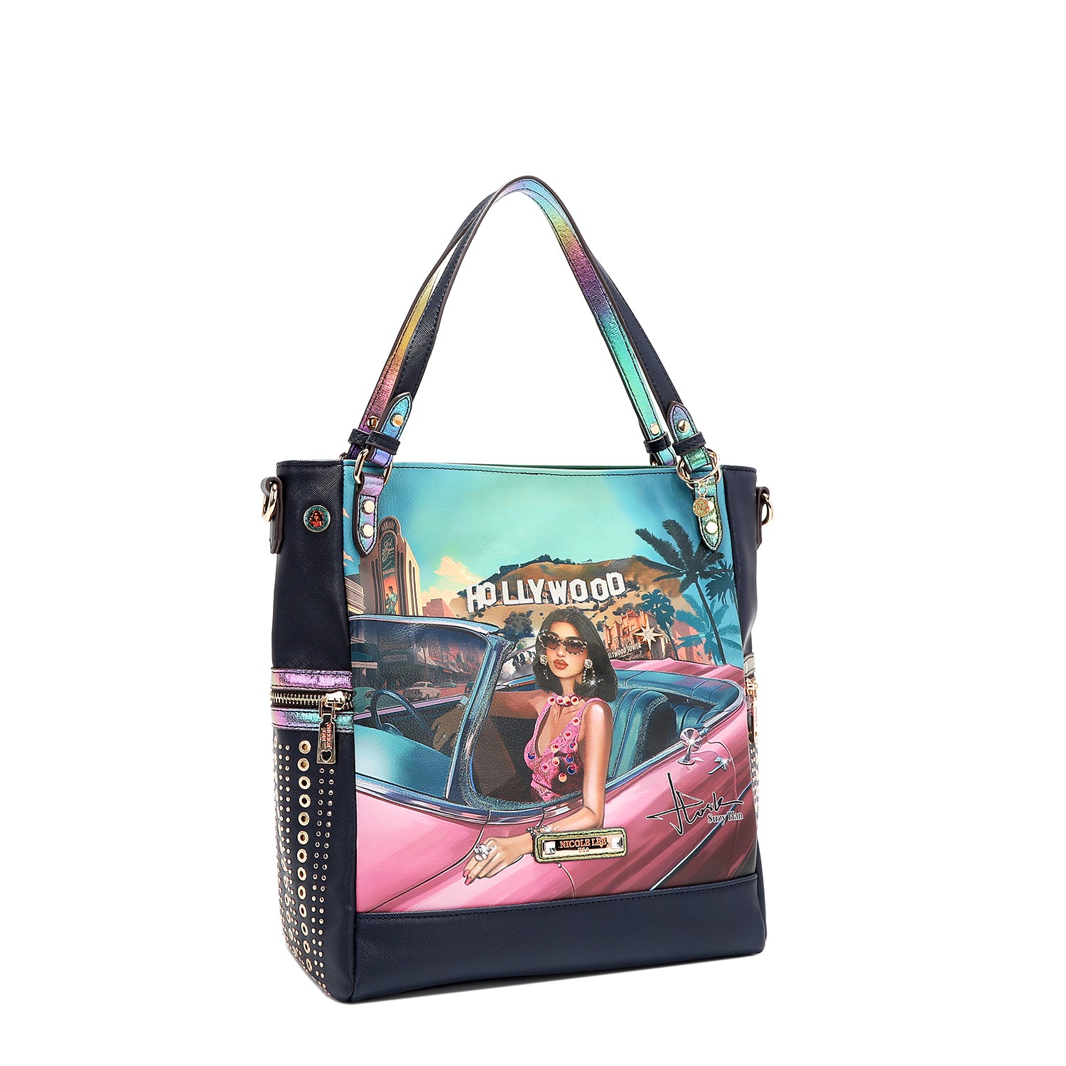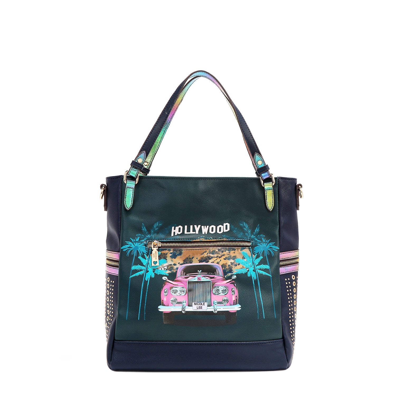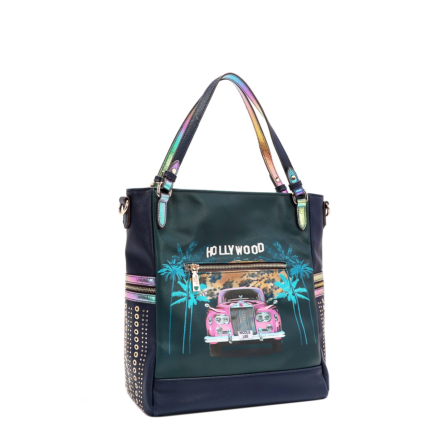 - Sides embellished with rivets, eyelets and decorative zipper details