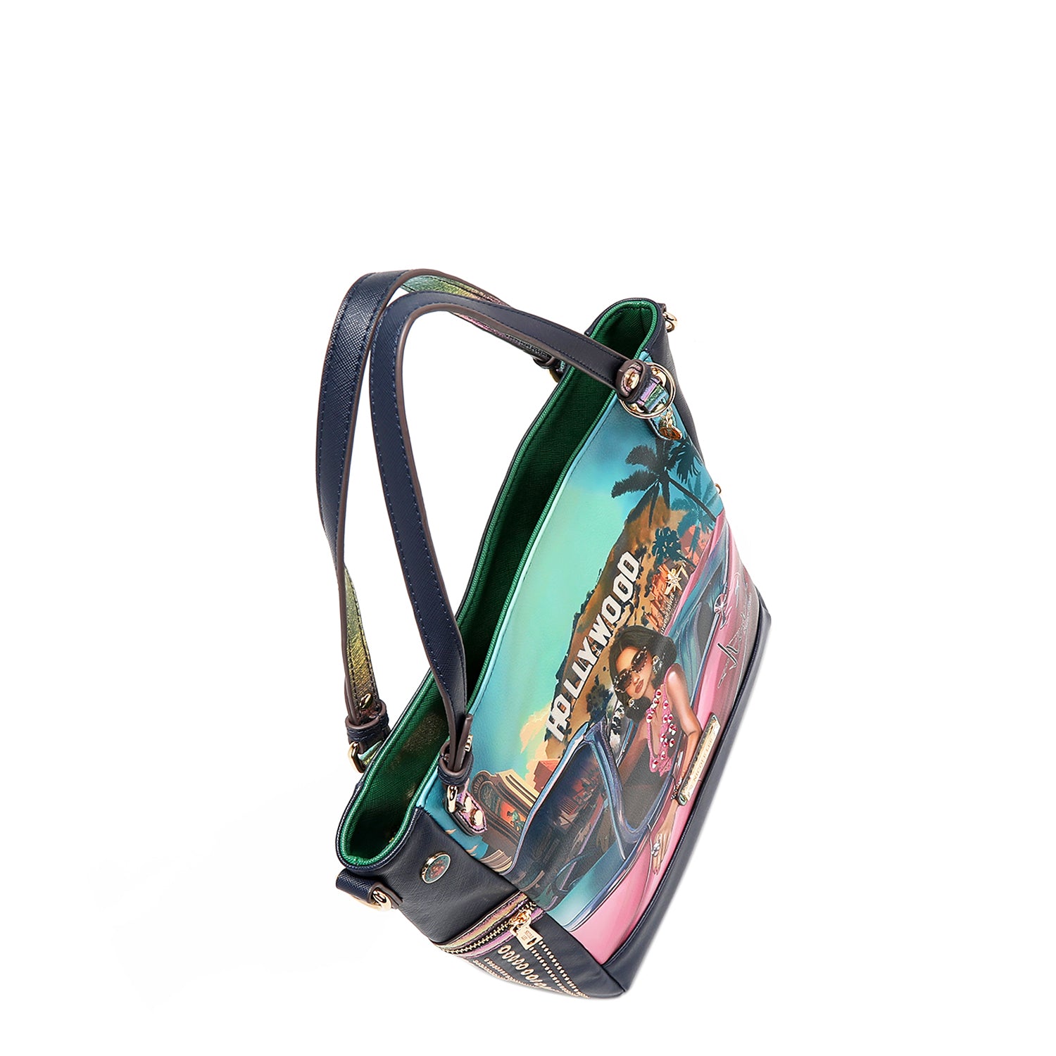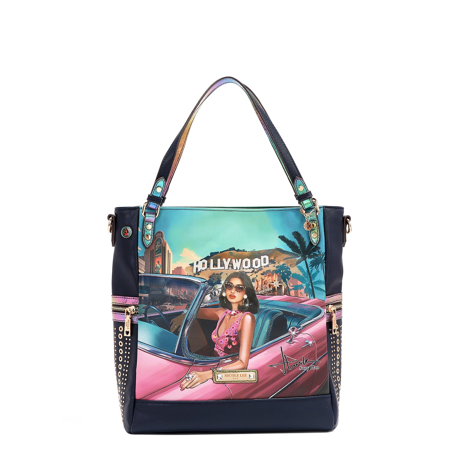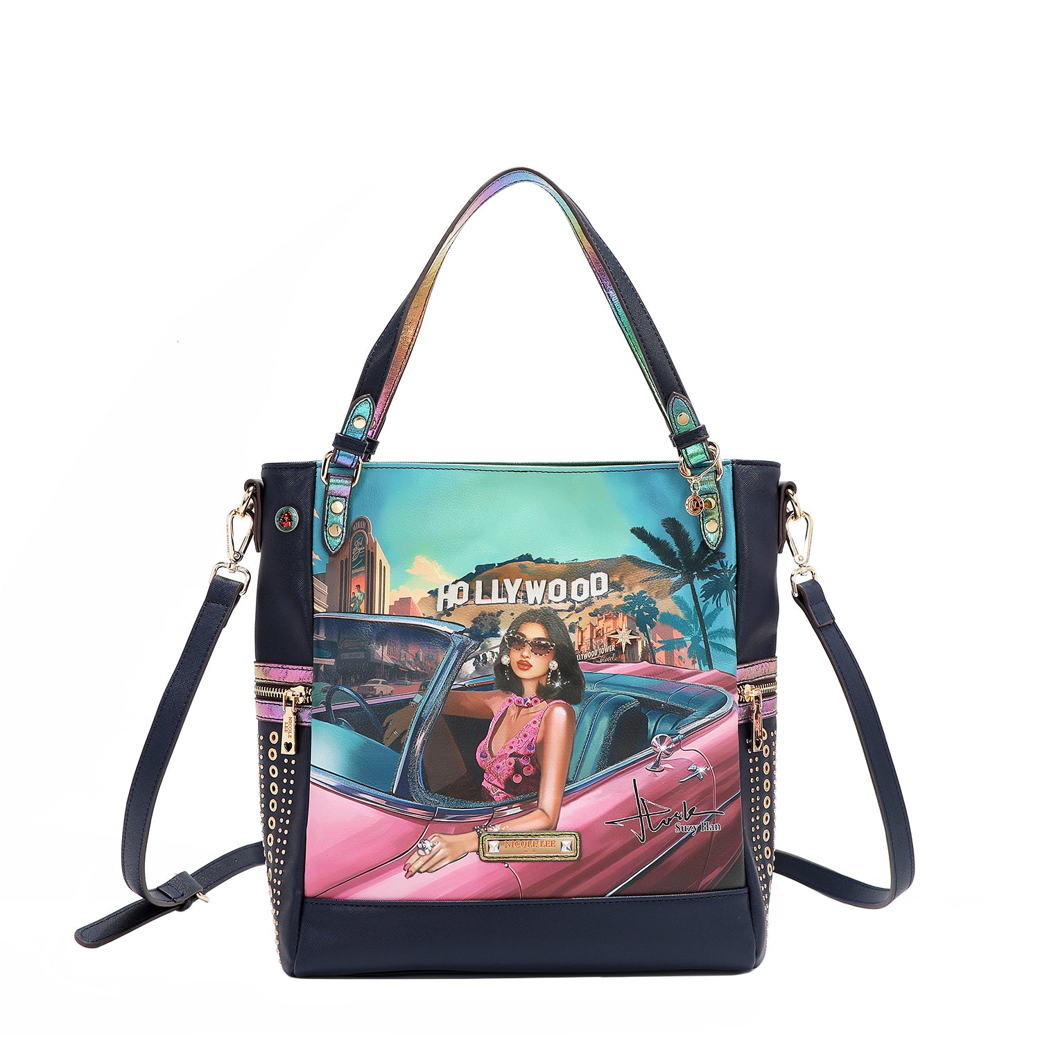 - Sides embellished with rivets, eyelets and decorative zipper details