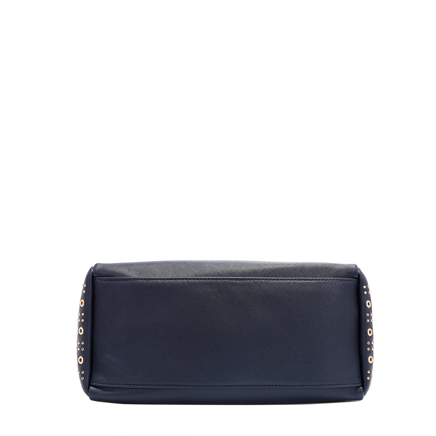 Gleaming grommets and exposed zipper details inject this spacious tote bag with a daring, signature edge, making it a striking statement piece guaranteed to turn heads and capture attention.