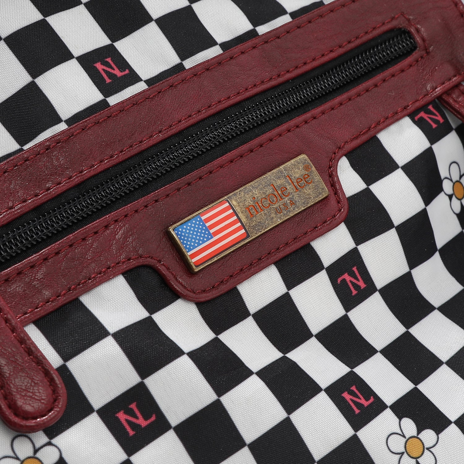 - Structured, rolled dual top handles (7.5' drop) with Nicole Lee authentic circle charm