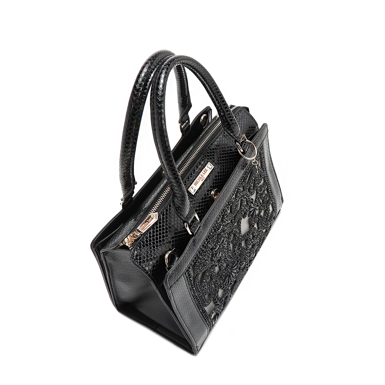 Perfect for making an alluring and refined impression, our lace satchel is the ideal companion for date nights, parties, and any occasion where you want to leave a lasting impression. Embellished with tonal rhinestones for a subtle touch of sparkle, it reveals three spacious compartments to keep your essentials organized with ease.