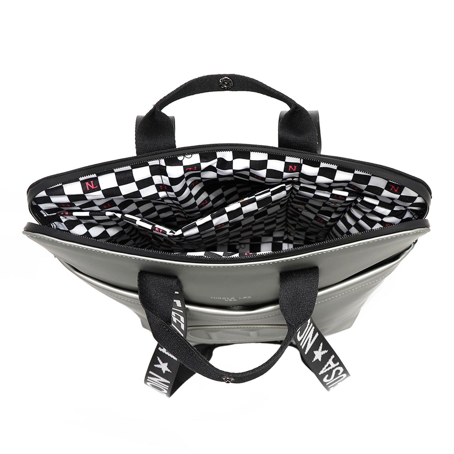 - Logo engraved lettering and zipper pulls