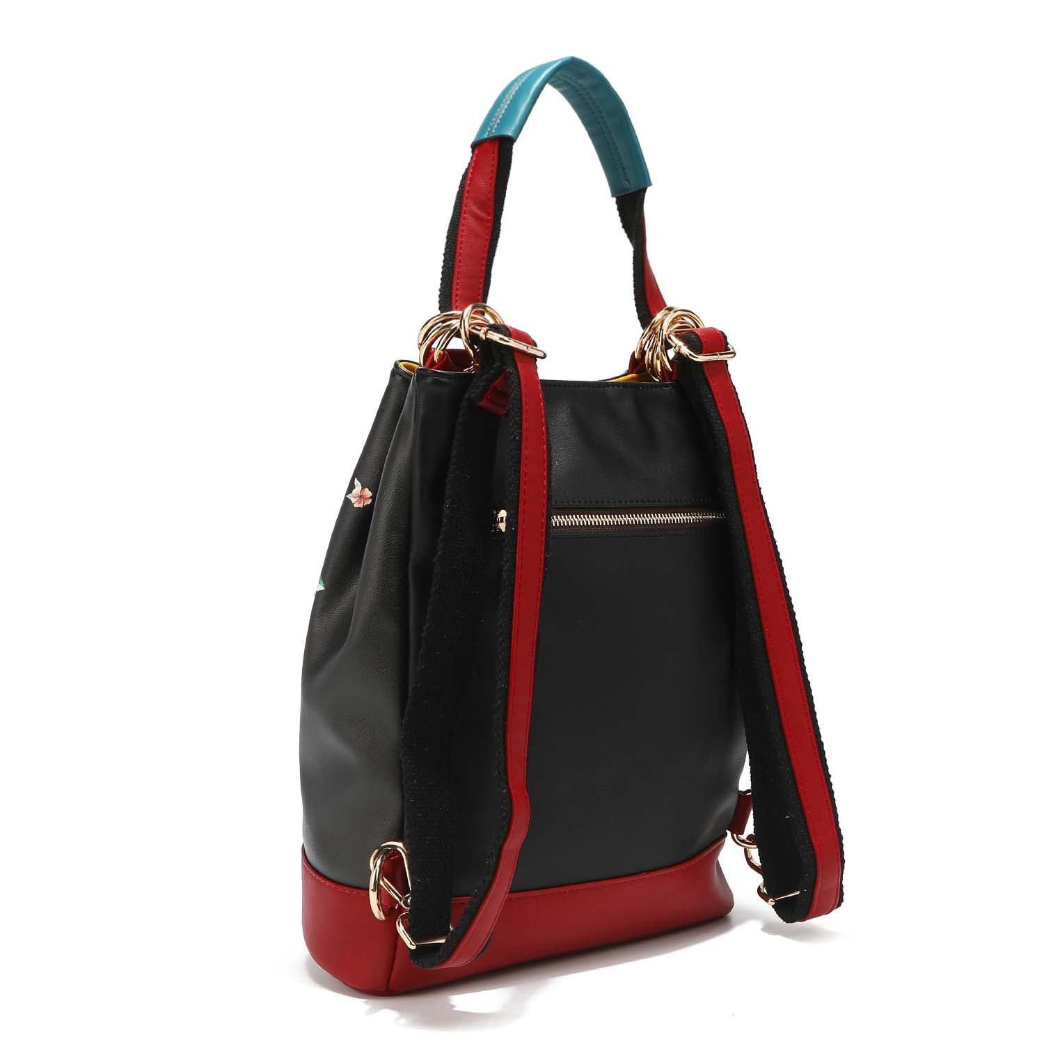 - Straps are suspended by double hoop rings and can be worn as a shoulder bag, crossbody (up to 25.5' drop) or backpack