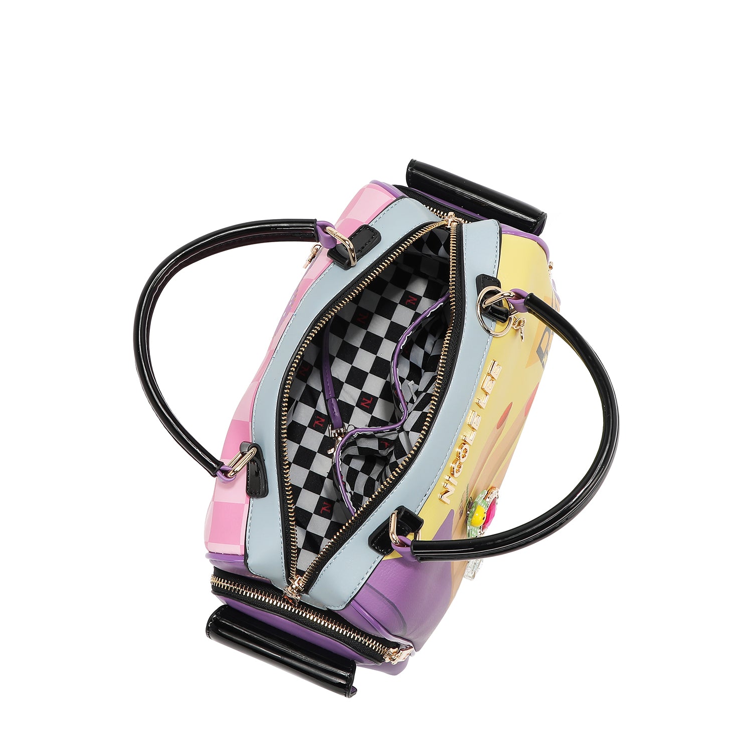 Meet the ultimate accessory for your inner beauty editor. The Nail Polish handbag is equal parts runway and nail bar—where pastel dreams, checkerboard chic, and charm-loaded embellishments collide. It’s a literal mood board in bag form, with enough flair to make your manicurist jealous. Hold it by the top handles or let it dangle while you strut—either way, you’ll be serving looks.