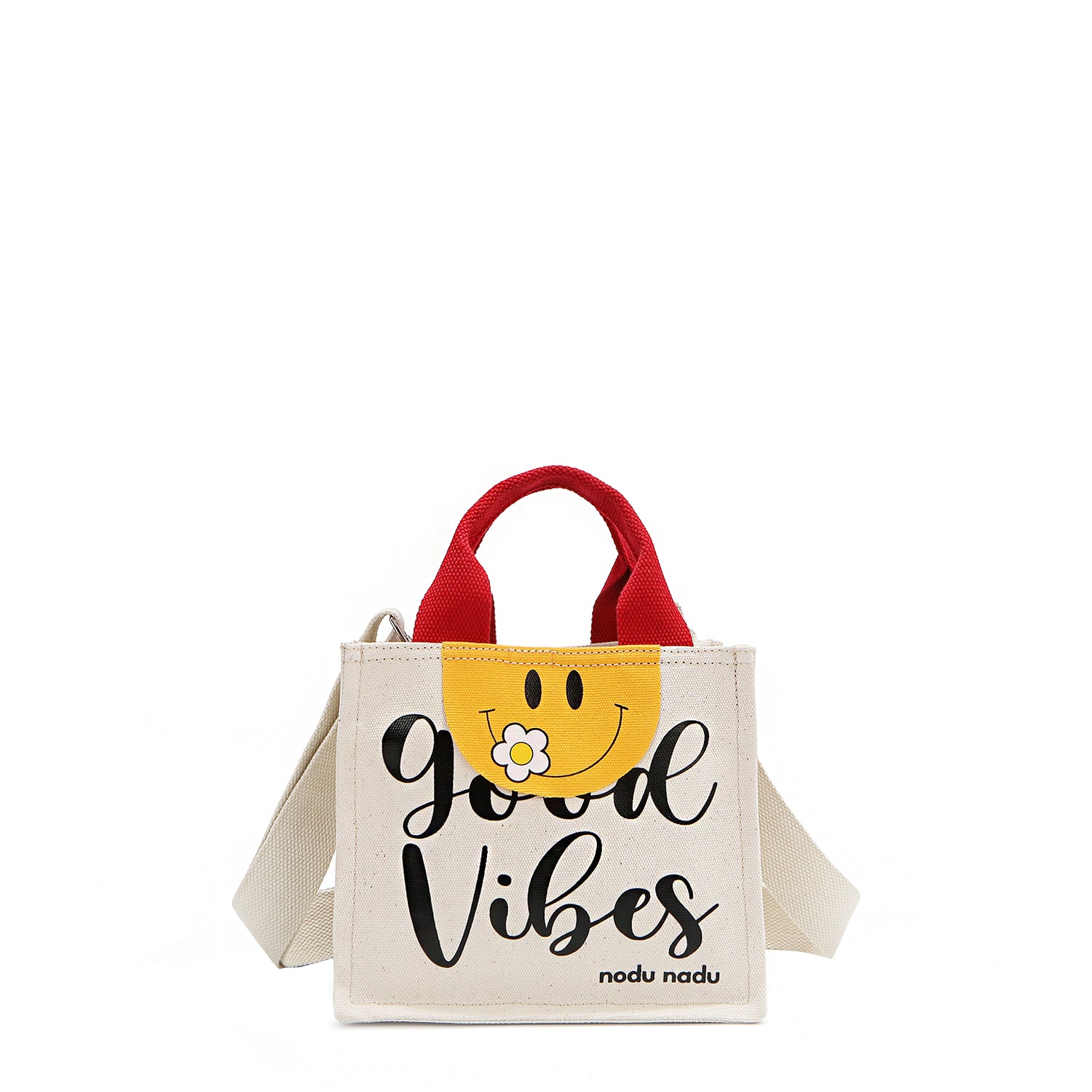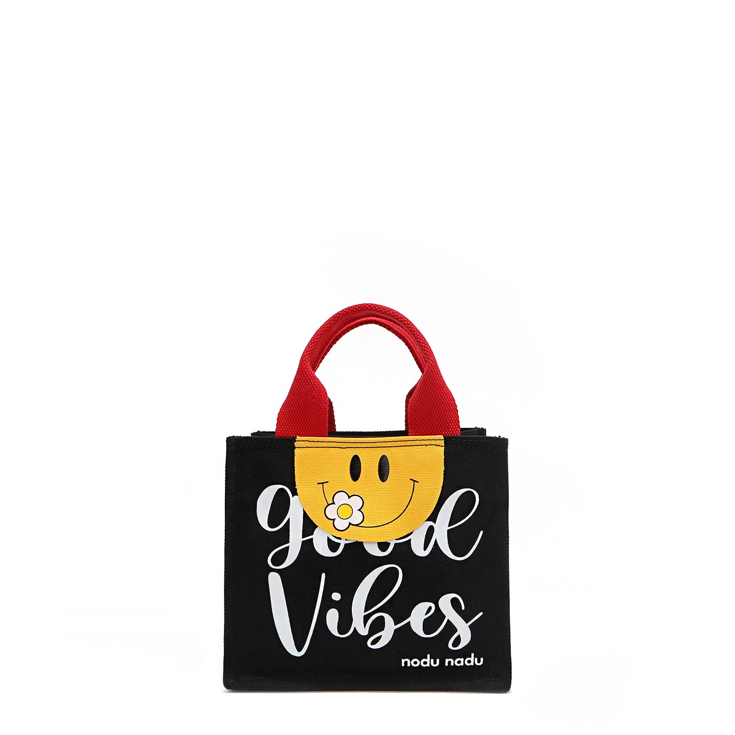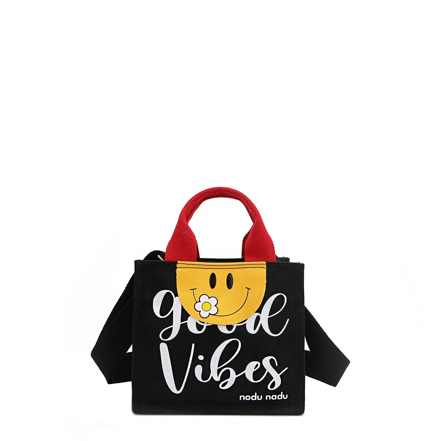 A little bag with a lot of joy! With its chic square silhouette, playful happy face, and “Good Vibes” message, Colette is here to spread positivity wherever you go. Small yet statement-making, it’s the perfect pick-me-up for any outfit!