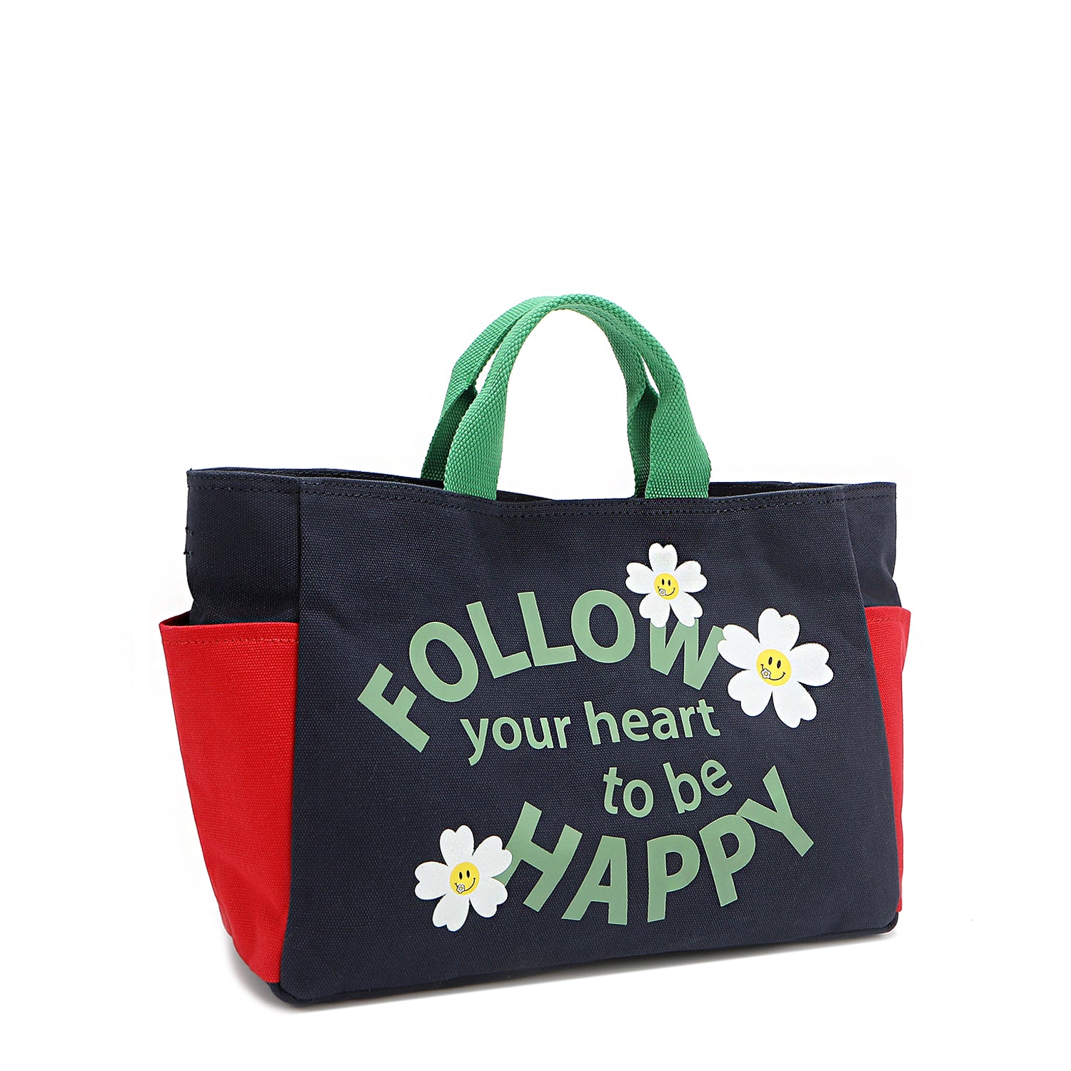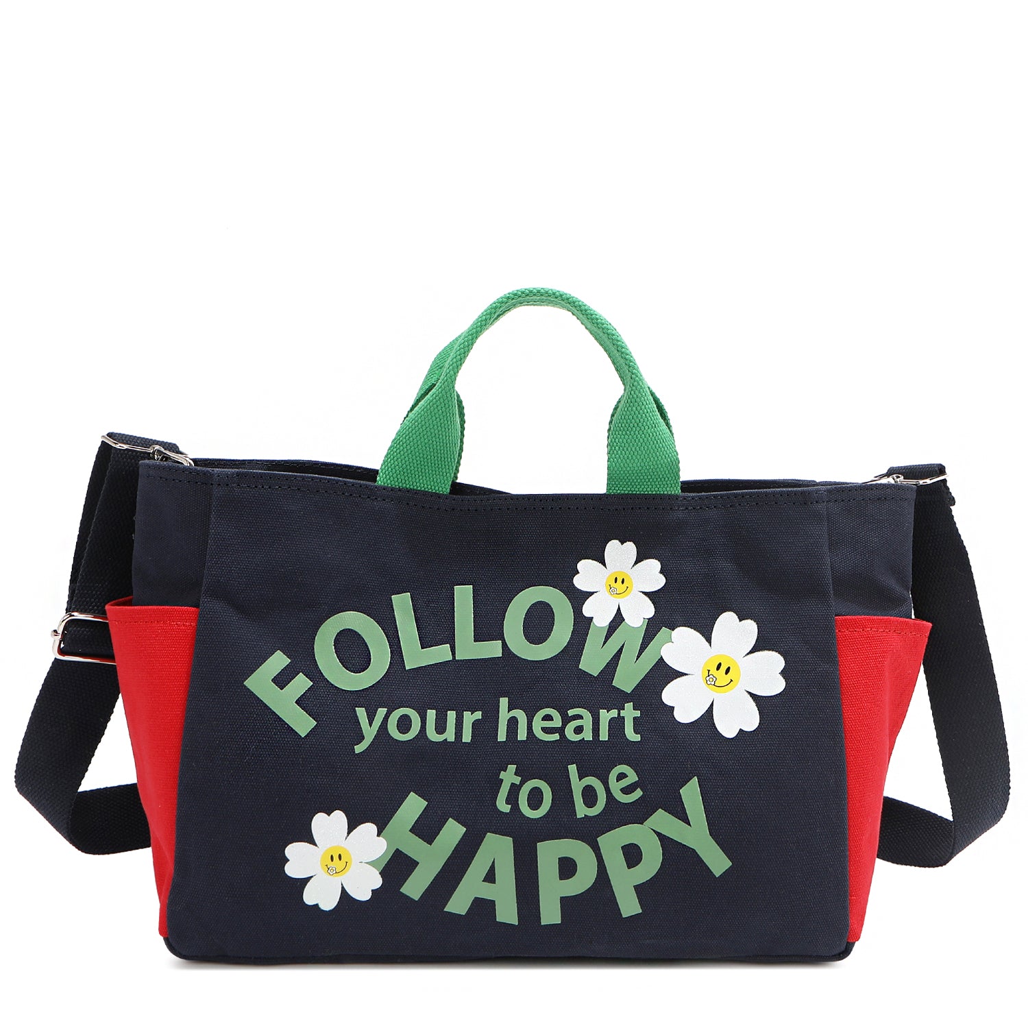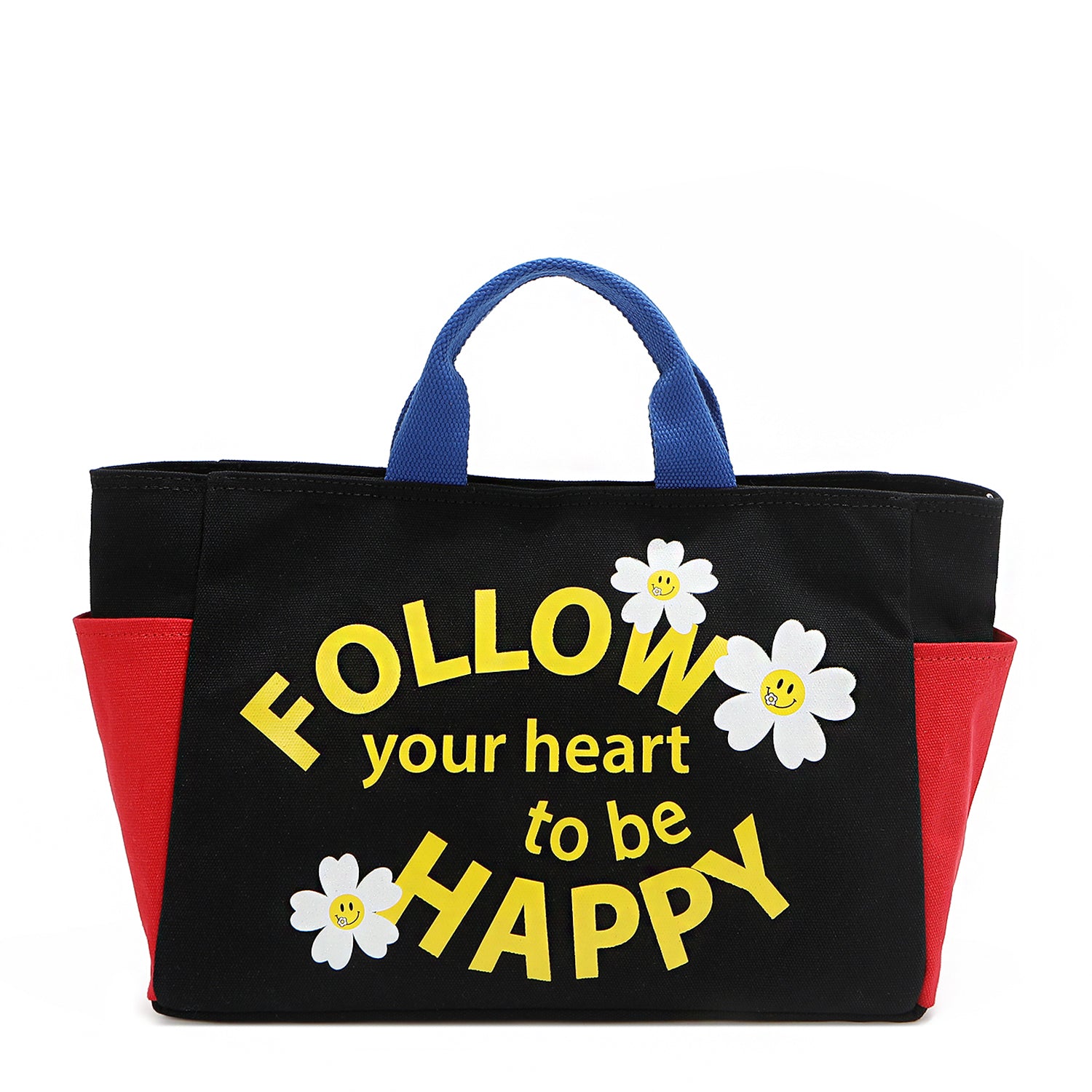 Your new everyday essential with a happiness boost! Elodie features handy side pockets and a spacious interior—perfect for your notebooks, wallet, snacks, and more. With its “Follow Your Heart to Be Happy” message and glittery floral smiley accents, this roomy bag is designed to bring bliss wherever you go!