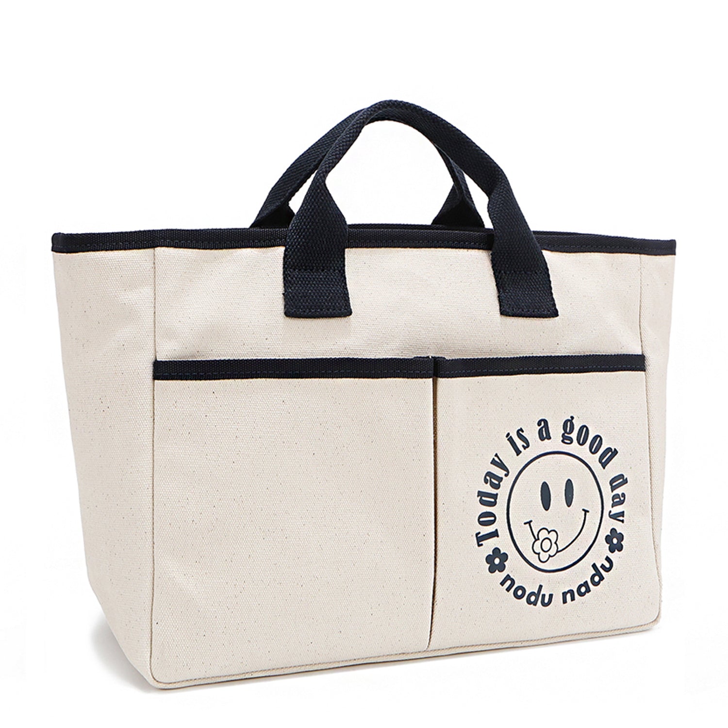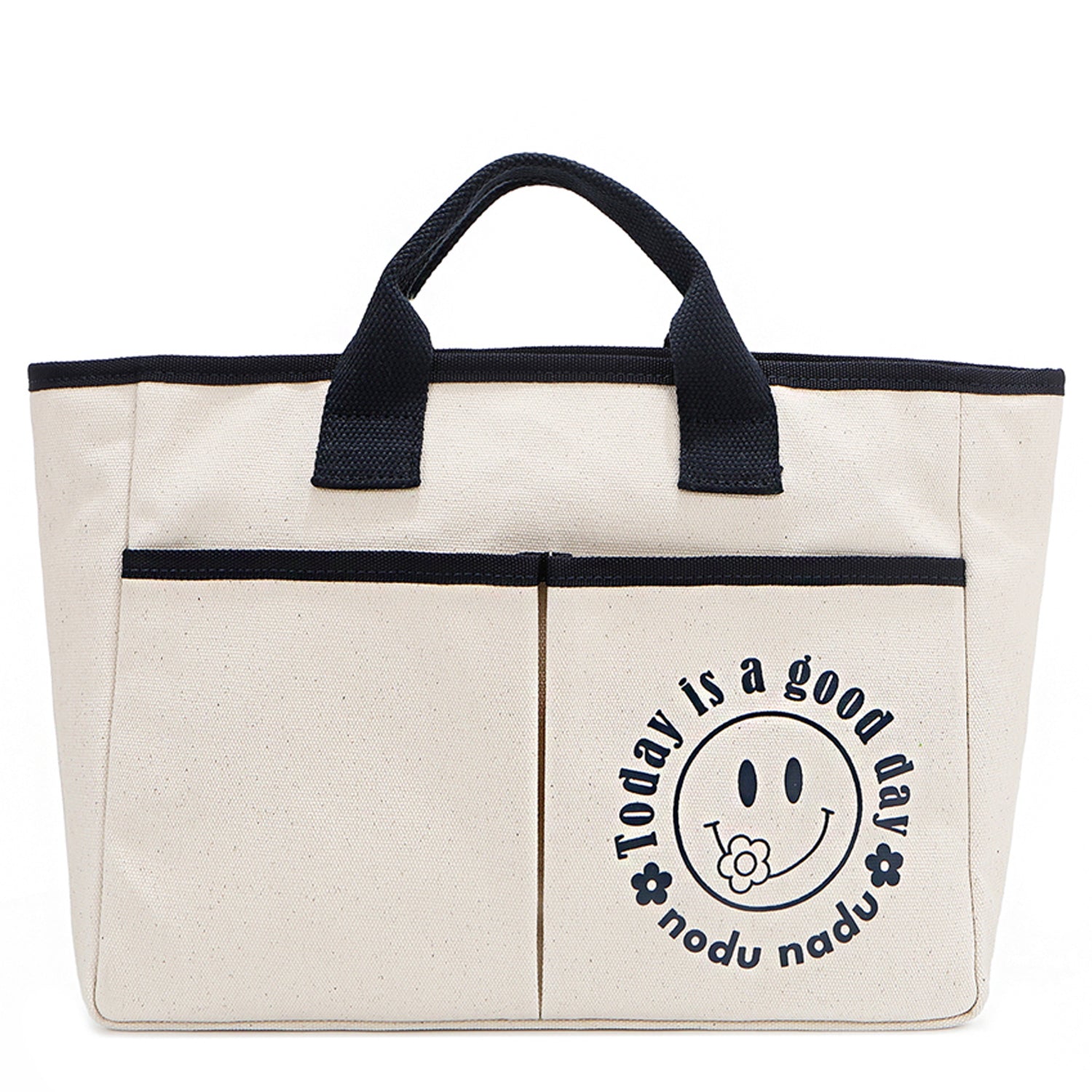 Your daily dose of positivity—now in bag form! With sleek trim details and a feel-good message, this everyday tote is here to remind you that yes, today (and every day) is a good one. Designed for both style and function, it features plenty of compartments inside and out—including handy side pockets for your water bottle, because we love a hydrated girly!