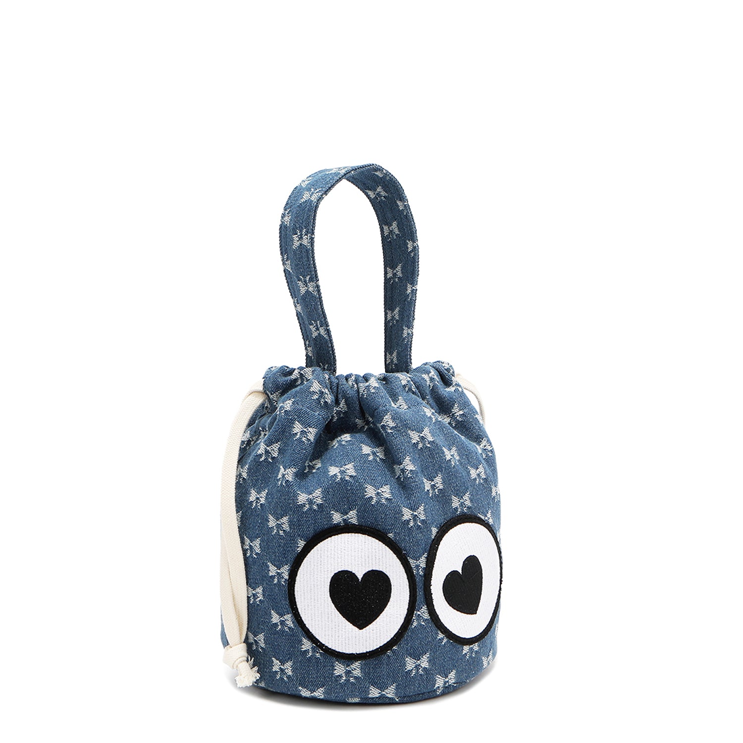 A bag that literally looks back with love! With its slouchy-chic bucket shape, sweetheart bow print, and heart-eye patches that bring it to life, this cutie is bursting with personality. Made from relaxed cotton with a drawstring closure, it’s ready to tag along on all your cutest adventures!