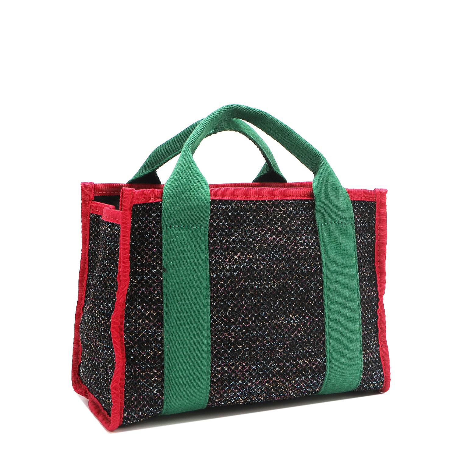 With its effortless slouchy silhouette and striking color-block trim, this tote is anything but ordinary. The real showstopper? Its fabric, woven with rainbow metallic stitching that catches the light just right—adding a dreamy shimmer and a touch of everyday magic to your look!