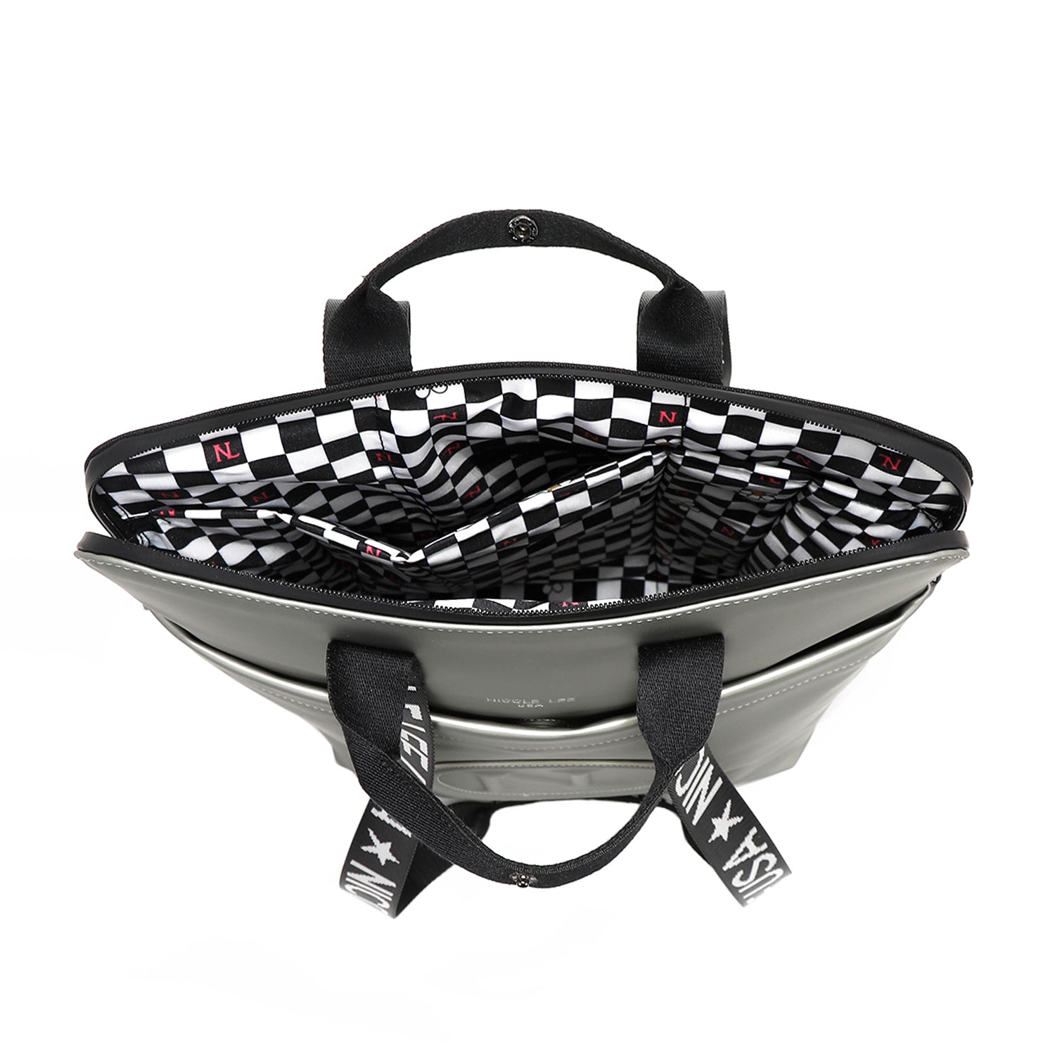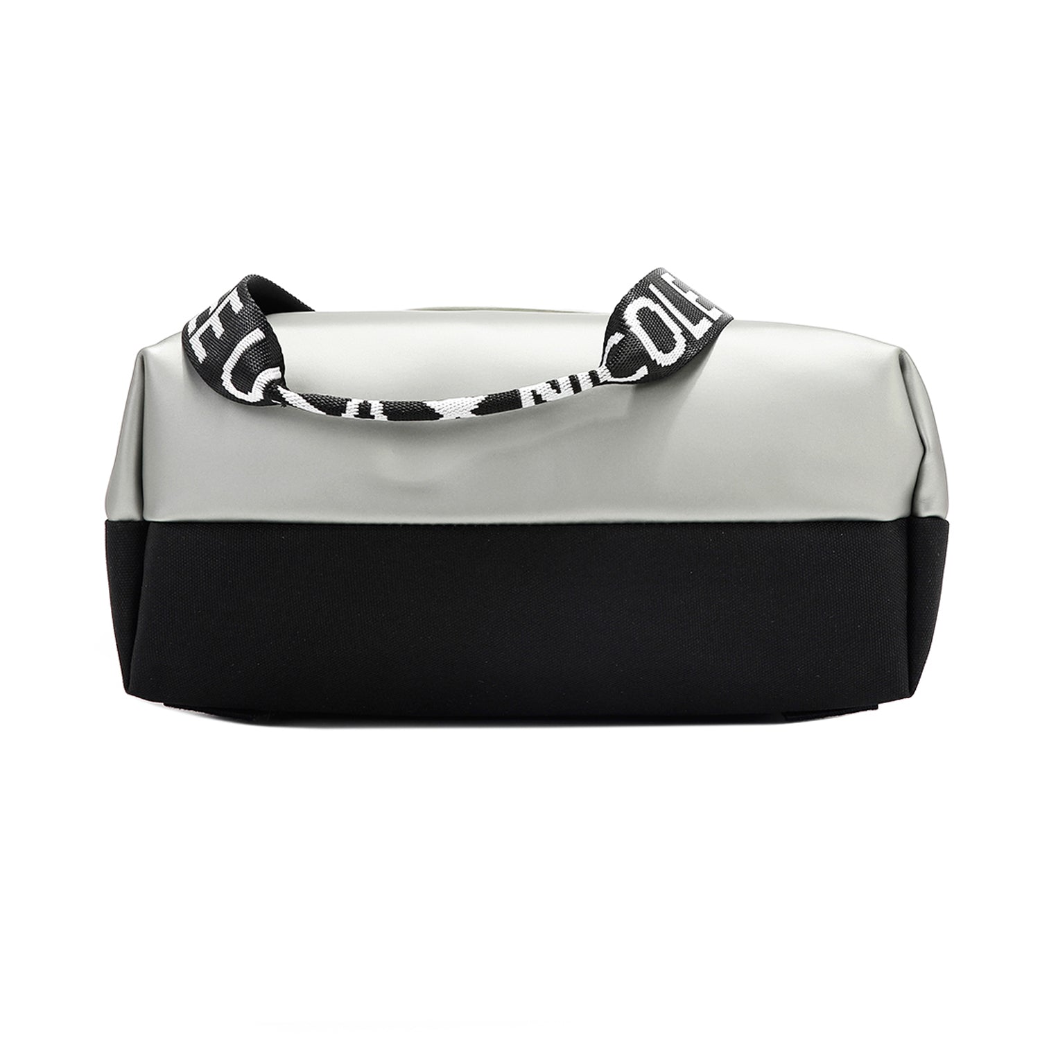 - Adjustable, logo webbed shoulder straps (use as a backpack or shoulder bag)