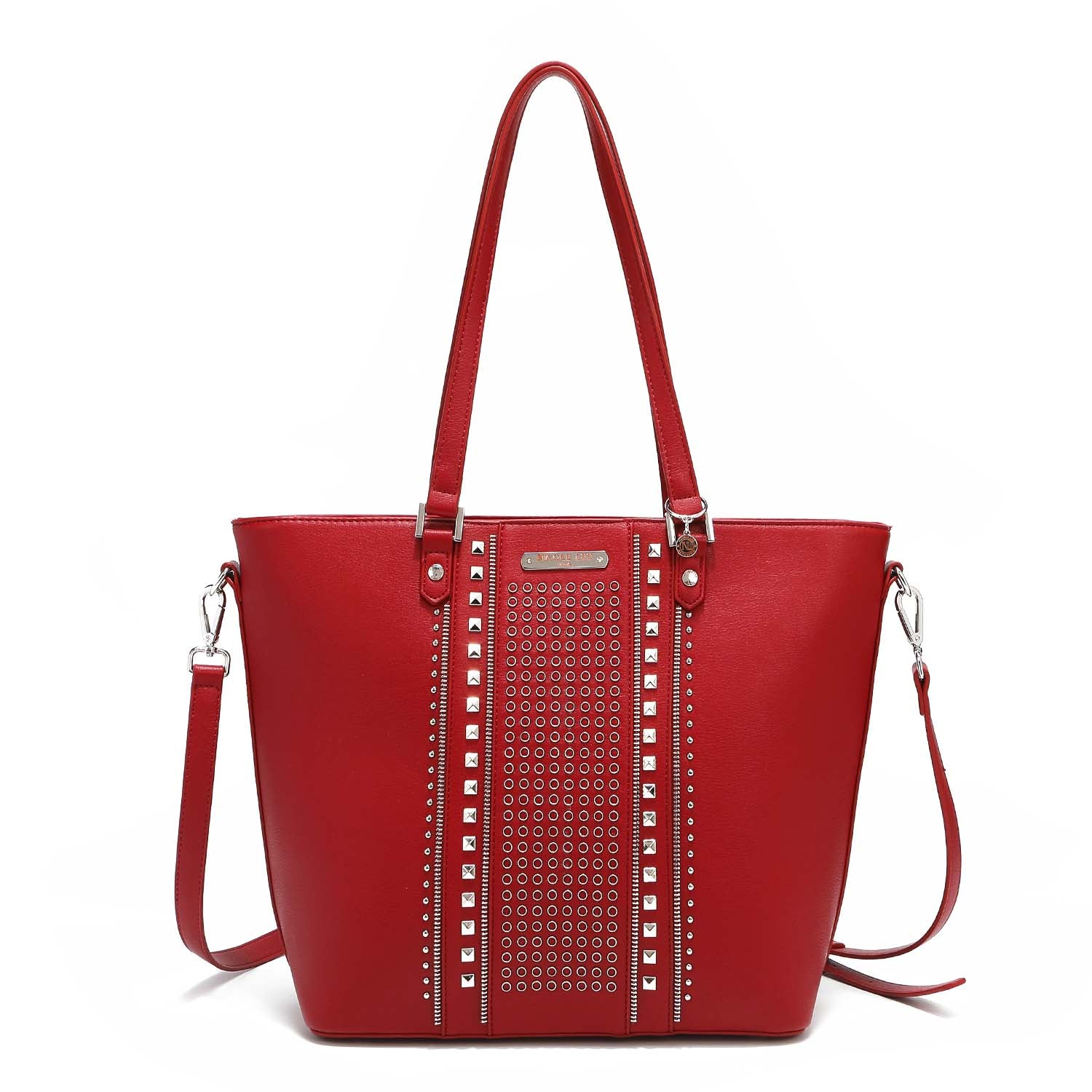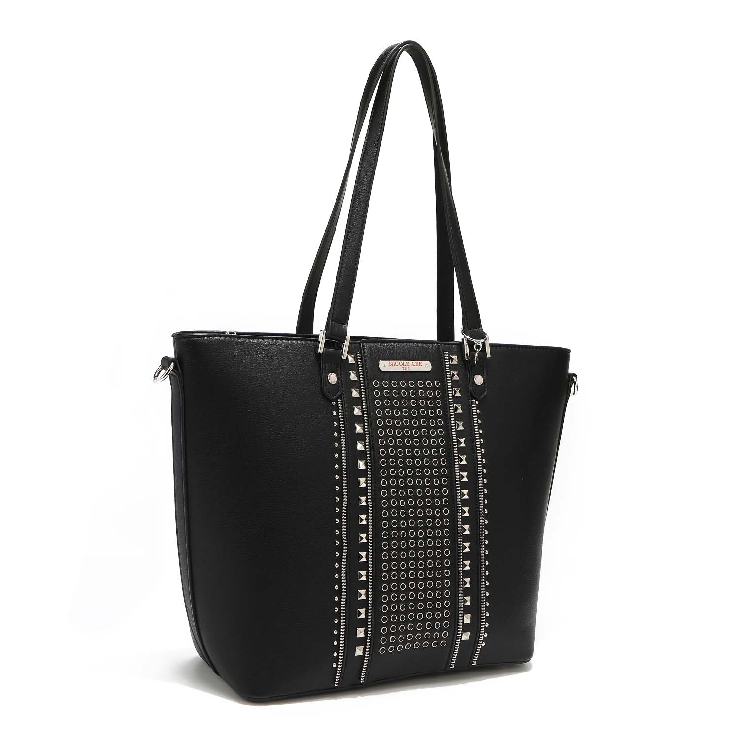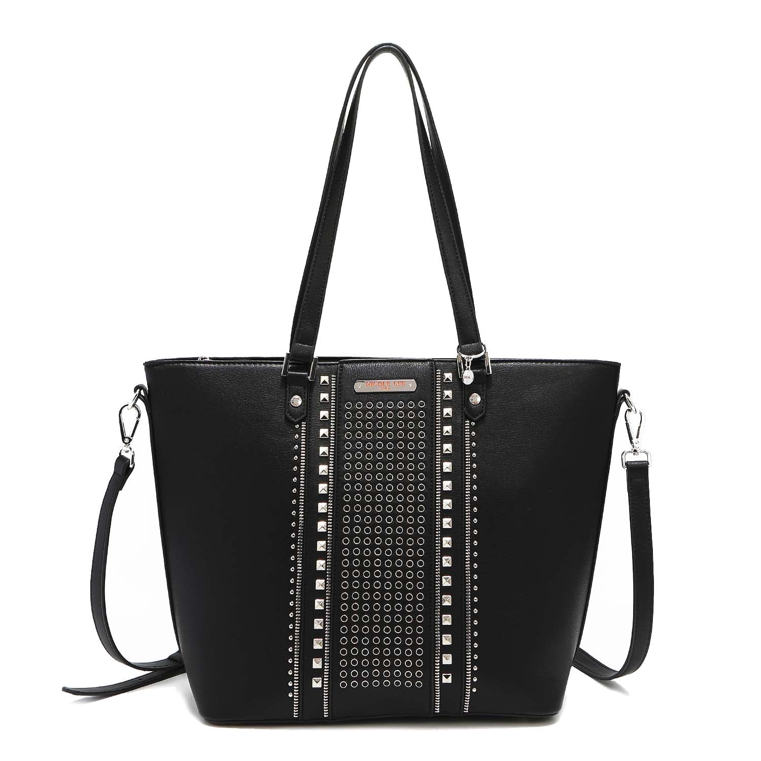 A classic statement piece: our studded shopper is adorned with chic detailing and comes with an adjustable (and optional) shoulder strap for versatility.