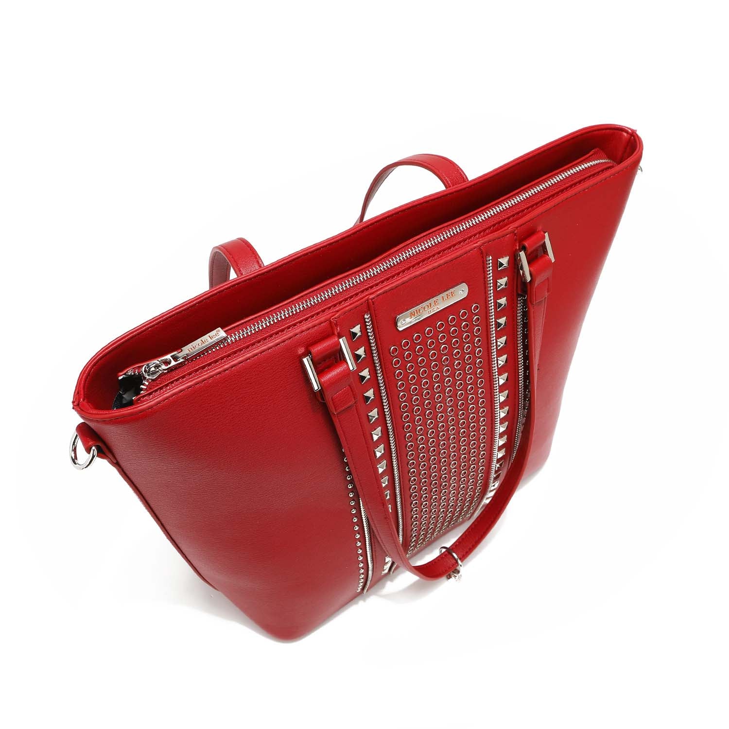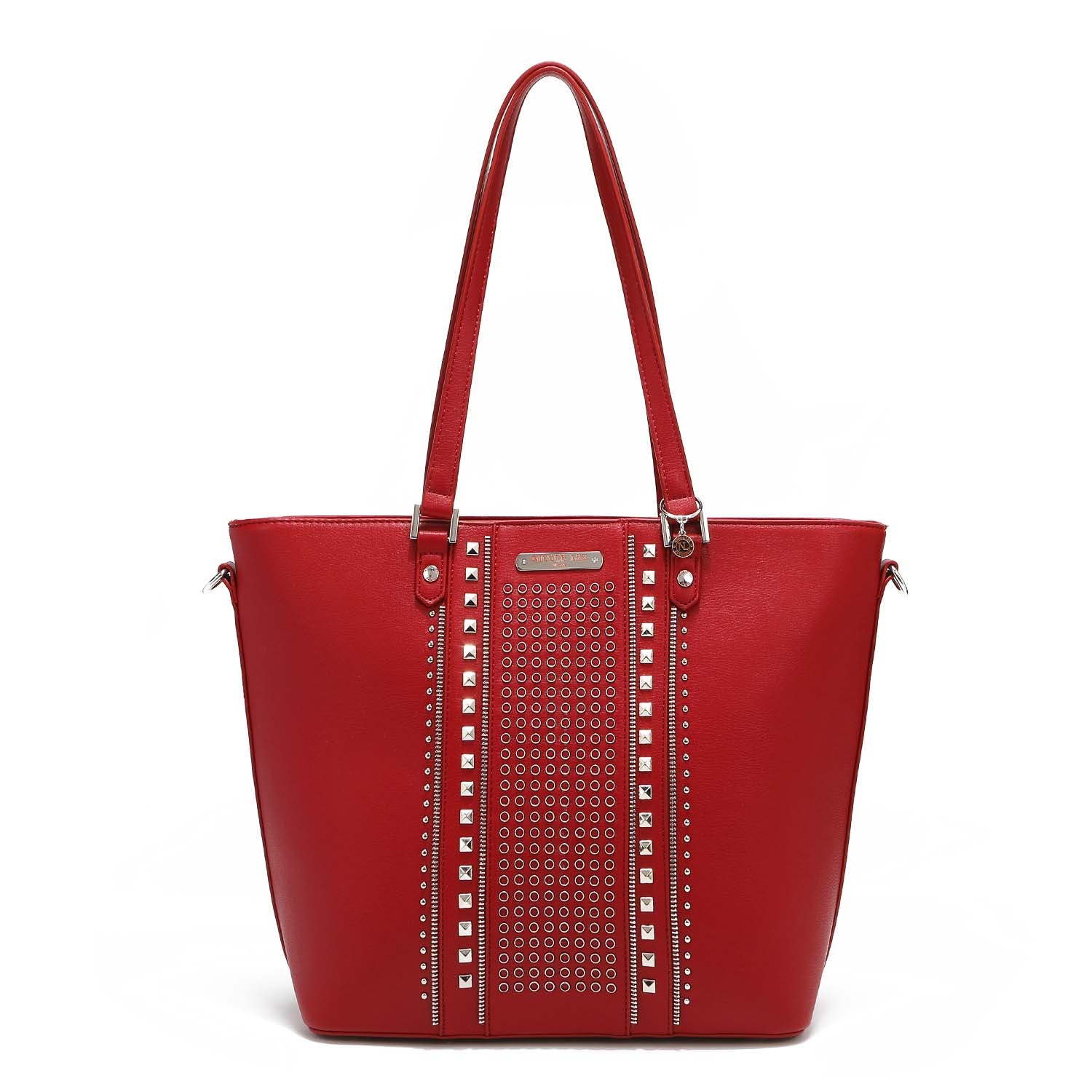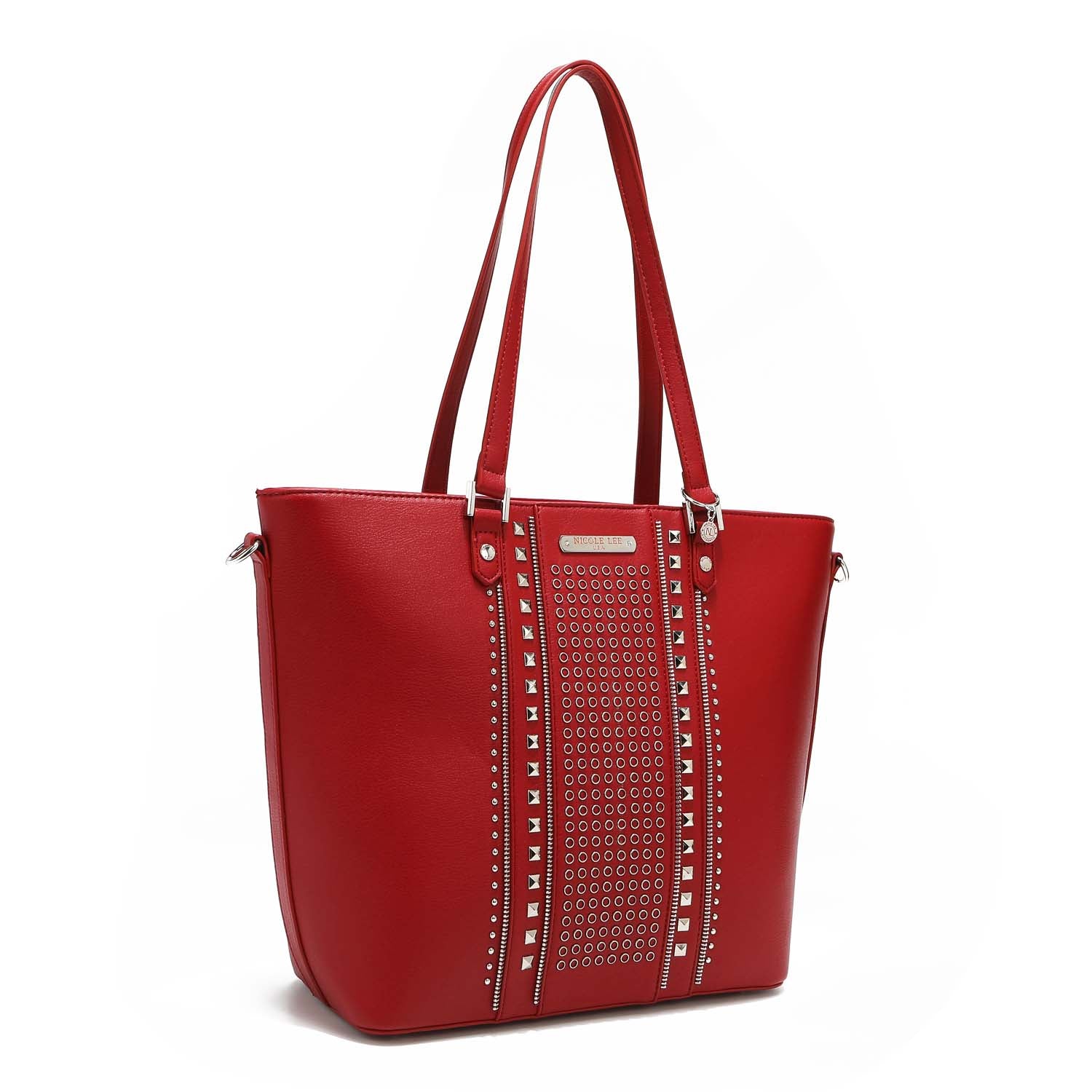 A classic statement piece: our studded shopper is adorned with chic detailing and comes with an adjustable (and optional) shoulder strap for versatility.
