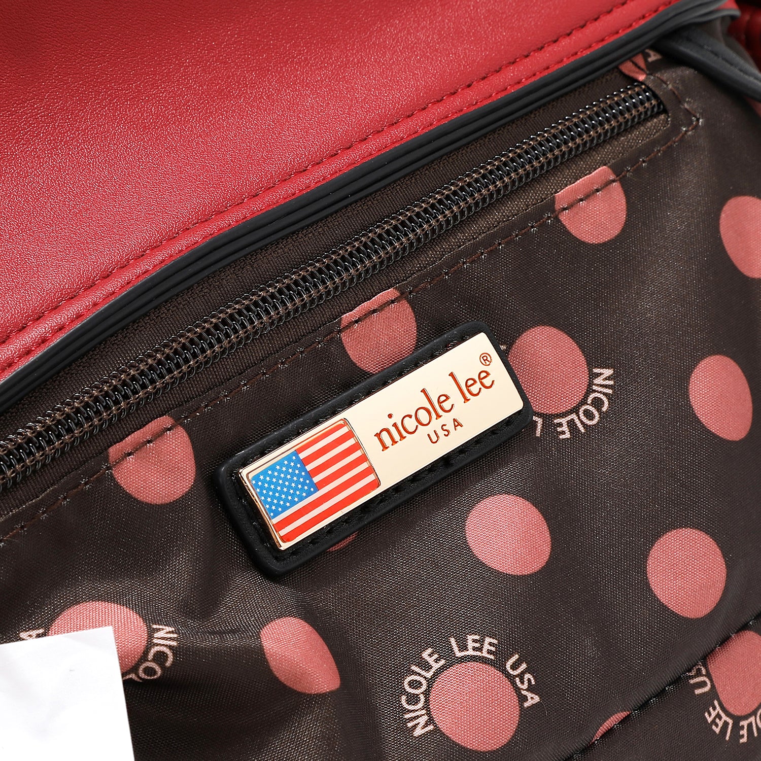 - Pebbled vegan leather and tweed exterior with sequin embellishments