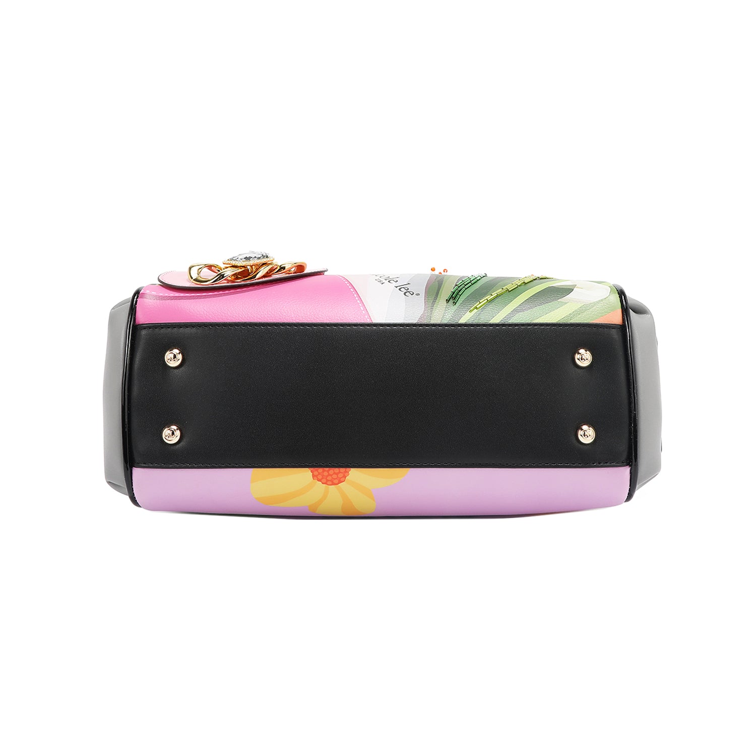 A statement of spring elegance with added functionality. This wide-shaped handbag captures the beauty of blooming tulips with intricate vegan leather appliqués and delicate bead embellishments. Designed for both style and convenience, it features multiple pockets on the side and back, offering easy access to your essentials while enhancing its chic appeal.